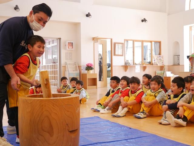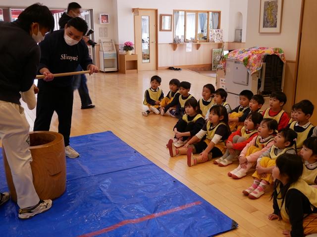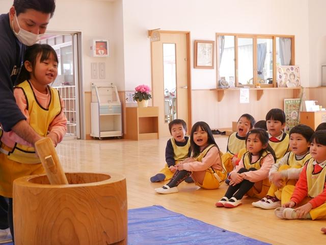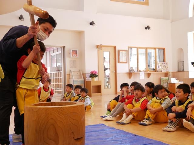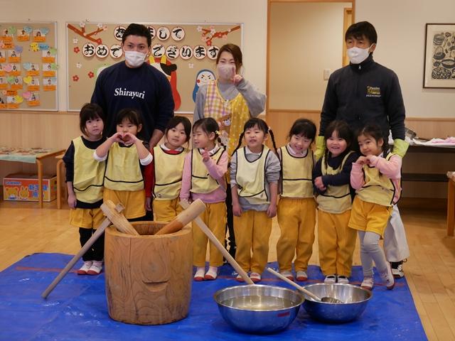 先週の金曜日には、みんなで餅つき大会を行いました。