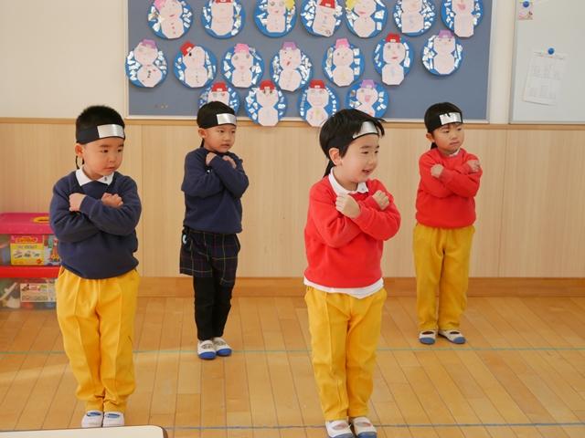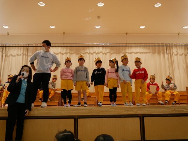 外で楽しく遊んだ後は、1月生まれのお友だちの誕生会に参加しました。