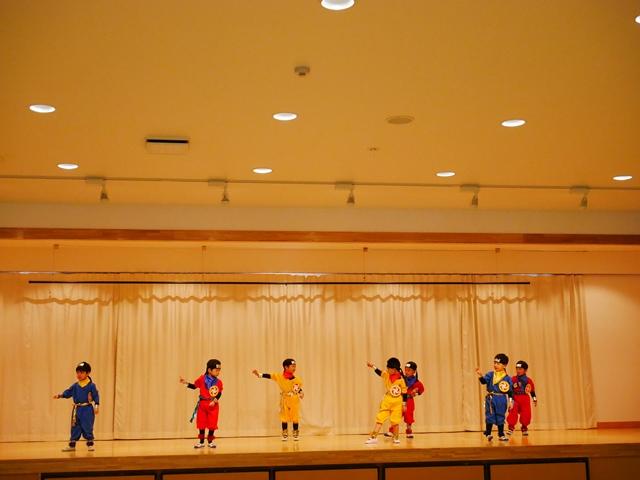 今日は、1部(なかよしA組・つくしA組・とんぼA組・ほしA組)のお友だちが本番と同じように衣装を着て舞台に立ちました。