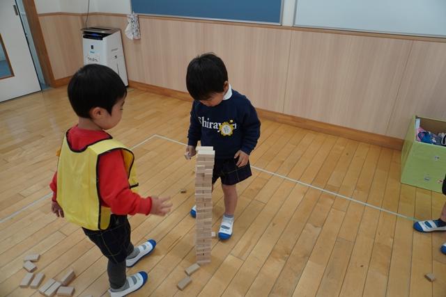 小雨が降っていてお外はお休みだったので、室内遊びを楽しみました。