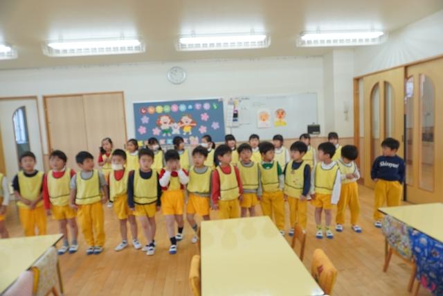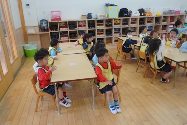 つくし組さんも先生と一緒に園歌や季節の歌を歌ったり、出席確認では元気にお返事したりしています。