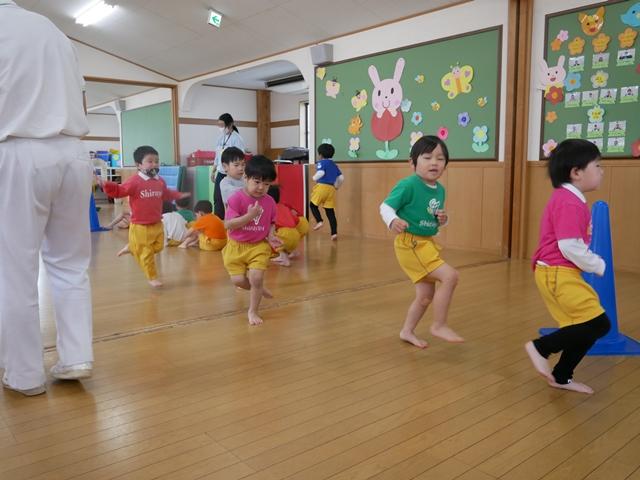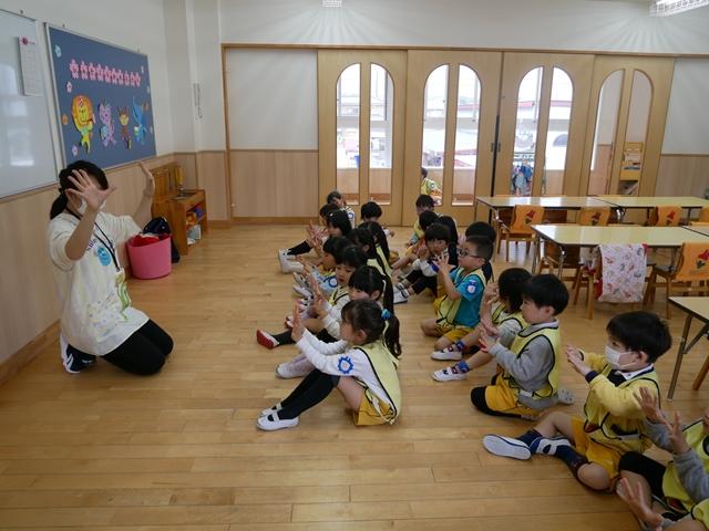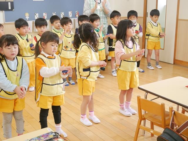 A組、B組、C組の順に松坂先生とカスタネット♪