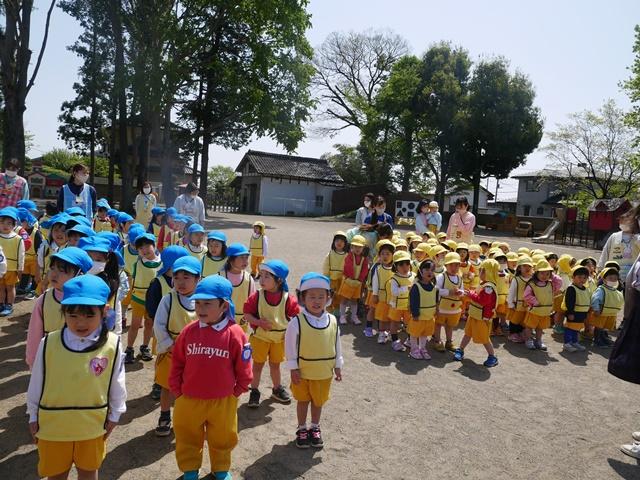 クラスごとに整列し、園歌を元気よく歌います。