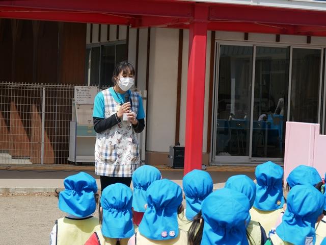 昨日は、園庭で朝会を行いました。