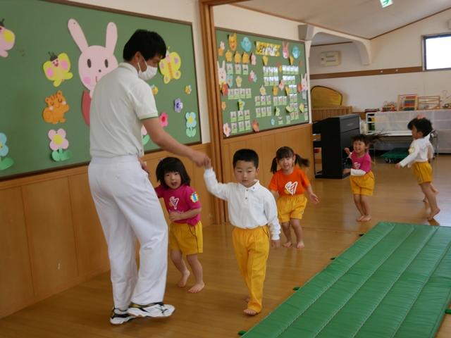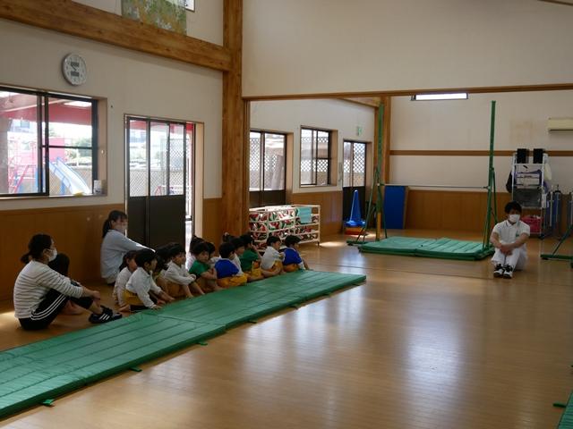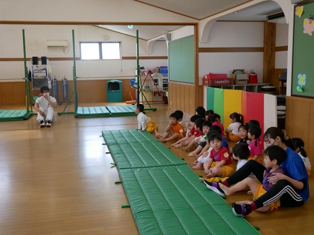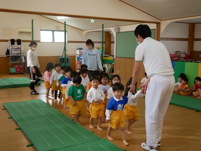 浅井先生のまねっこをして、三角お山座り。みんなとっても上手ですね。