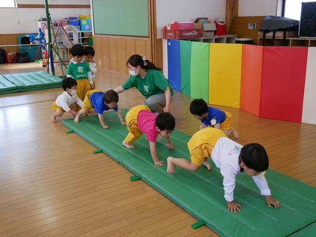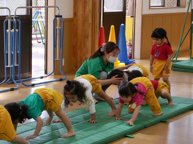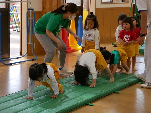 鉄棒やでんぐり返りにも挑戦します。