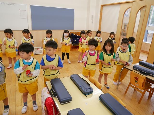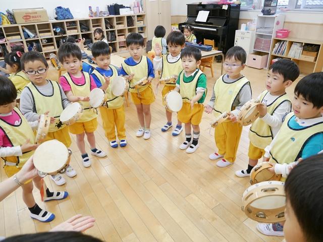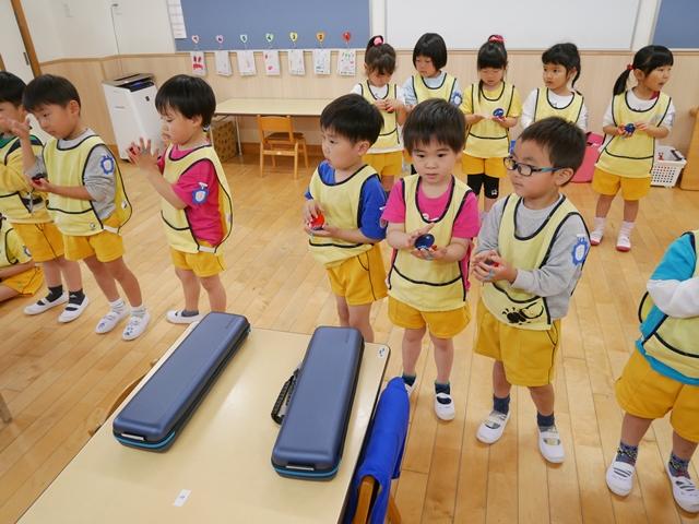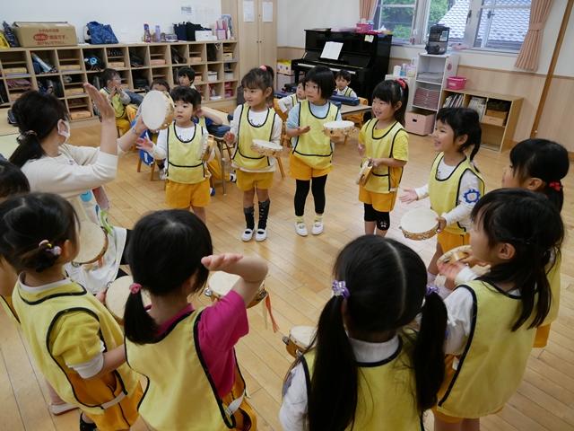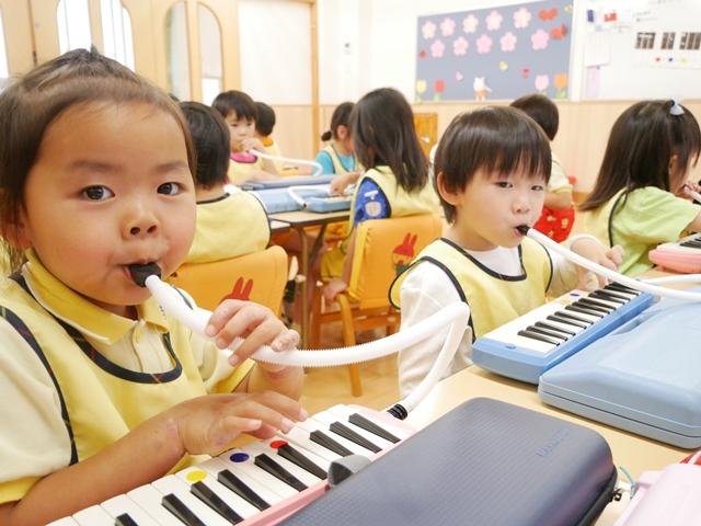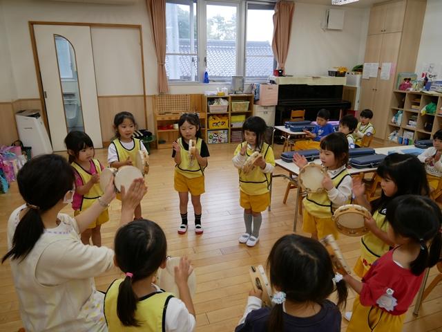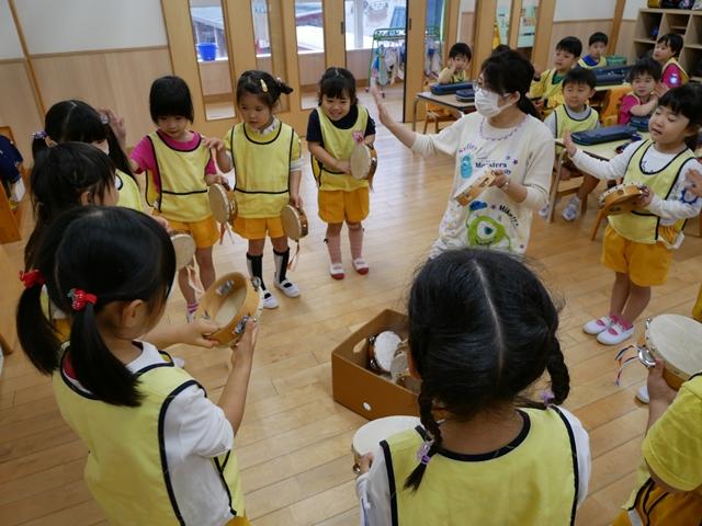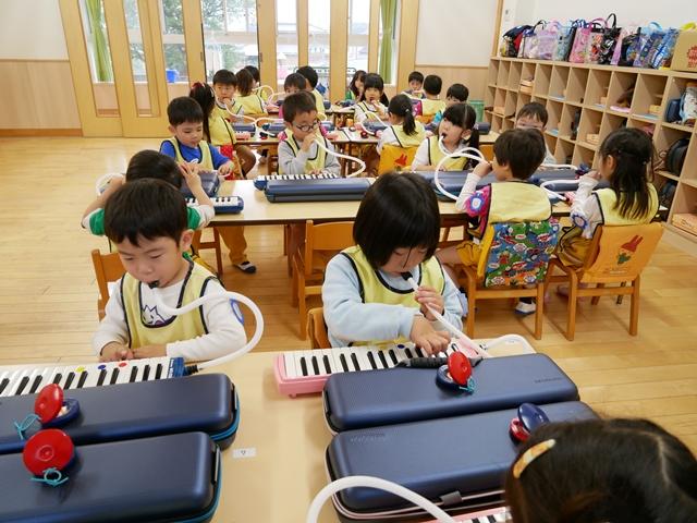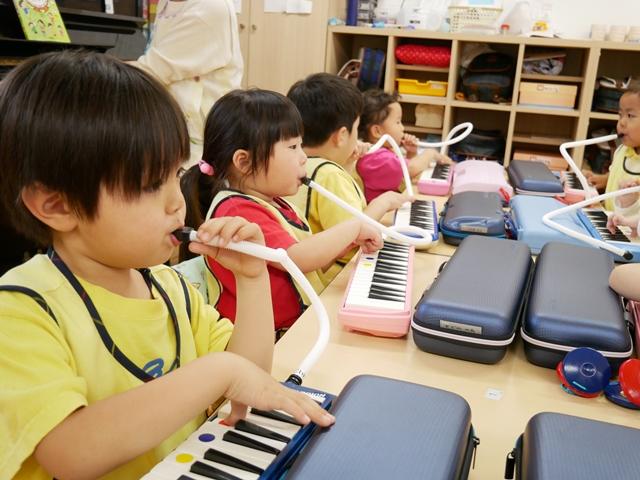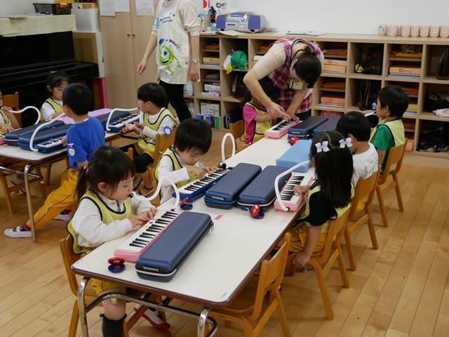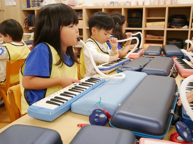 お歌を歌ったり、リズムに合わせてカスタネットやタンバリンをたたいたり、ピアニカの練習をしました。