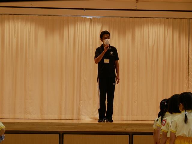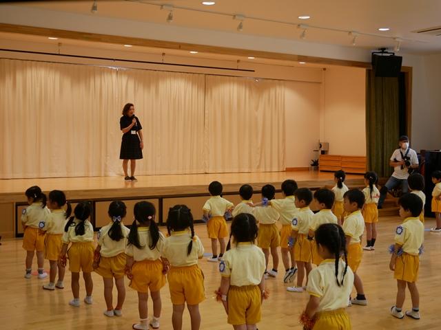 天候が不安定だったため、ほし組ととんぼ組はホールにて、つくし組となかよしランドはウッドデッキにて実施しました。