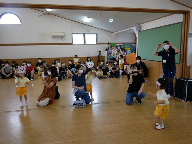 自分たちで選んで色塗りをしたパンダ・ウサギ・コアラのお面をかぶり、お家のかたと一緒に可愛いダンスを披露してくれました。