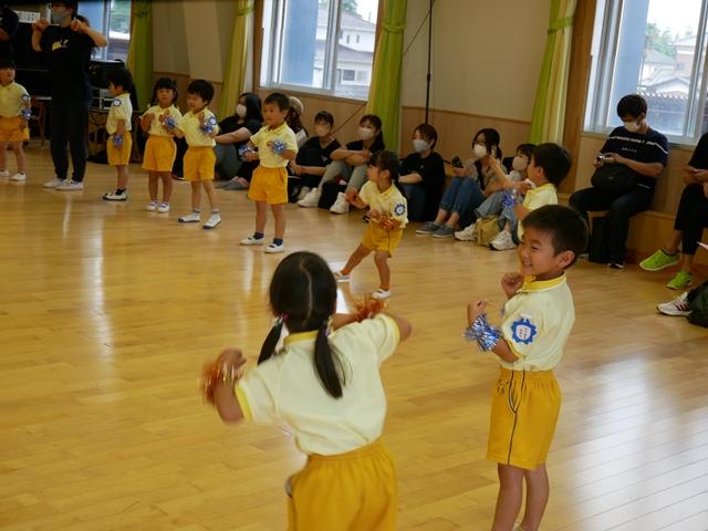 赤と青のポンポンをたくさんふって、元気いっぱい、お友達と息ぴったりのダンスを披露してくれました。