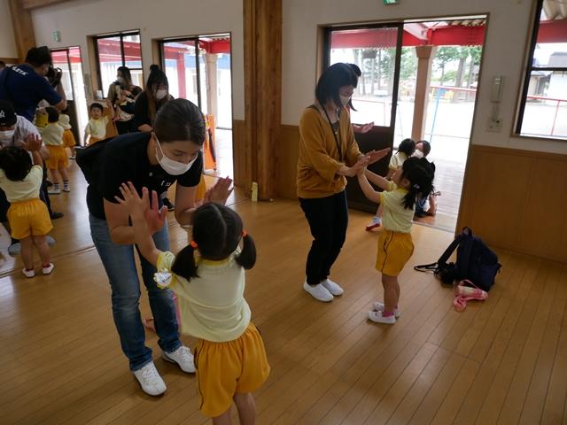 くるり~とひとまわり♪では、お家の方にくるっと回してもらって、みんなの嬉しそうな声が聞こえてきました。