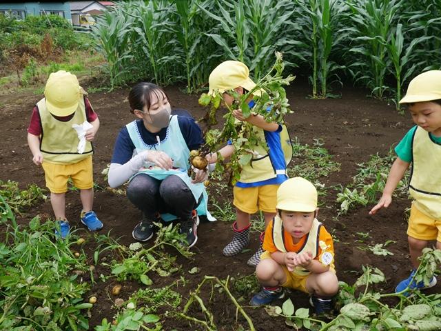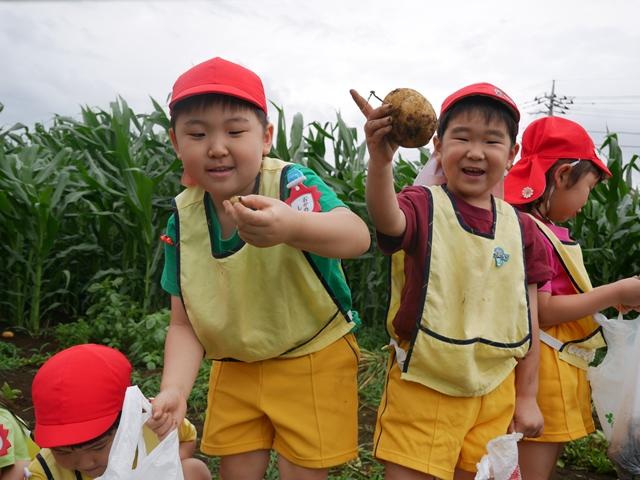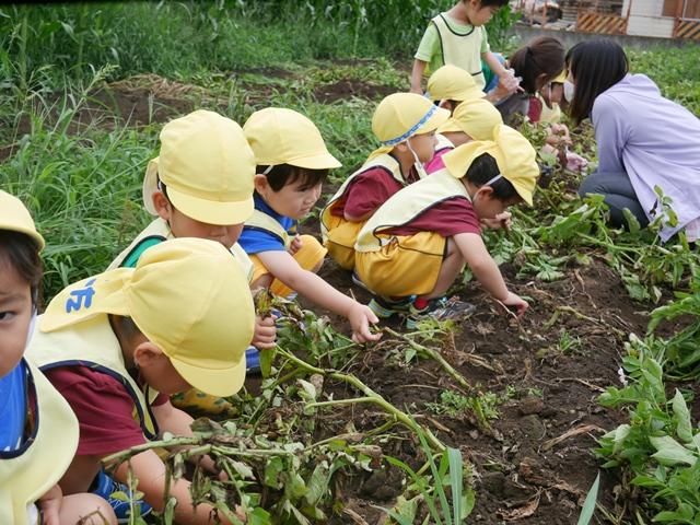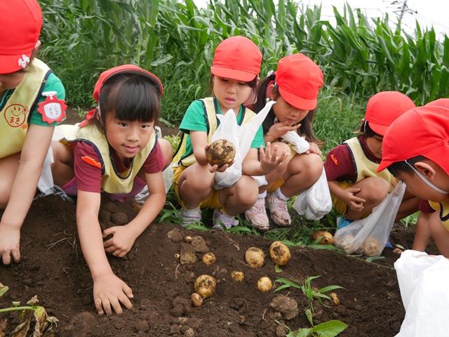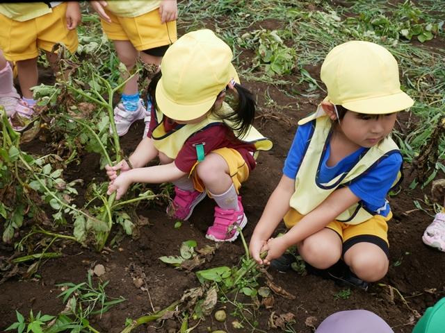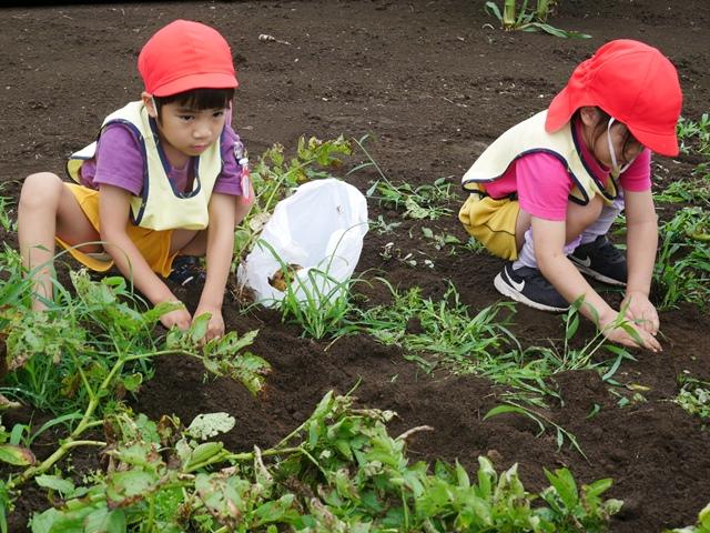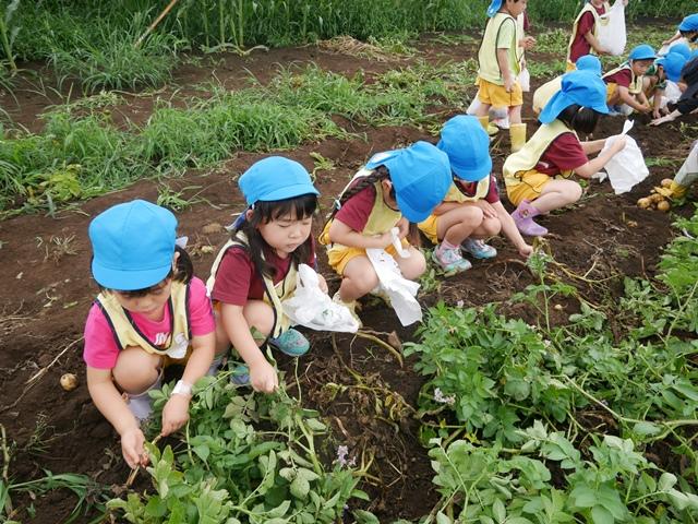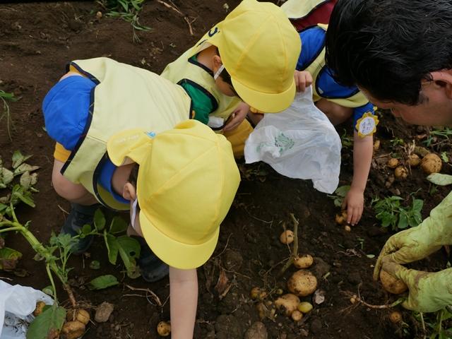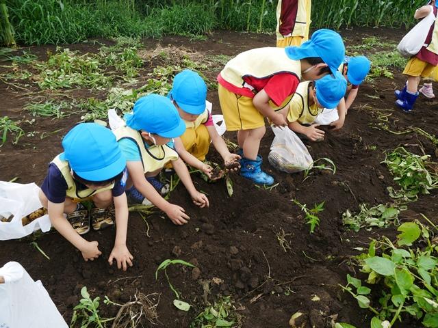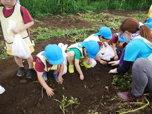 みんなの願いが通じたのか、雨も止み、つくし組・とんぼ組・ほし組のお友達はじゃがいも堀りに行きました。