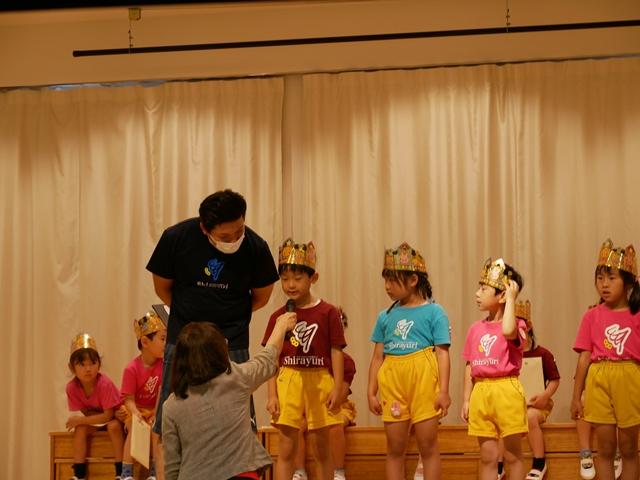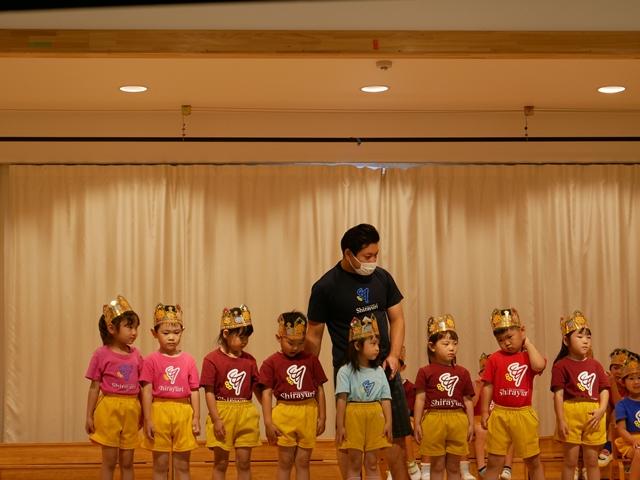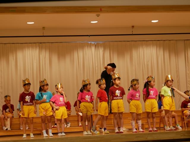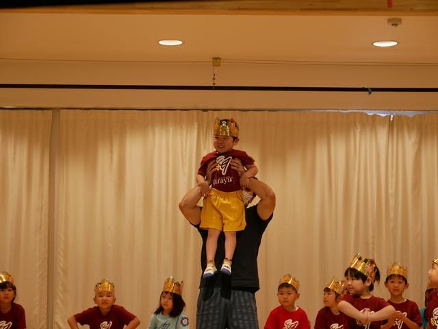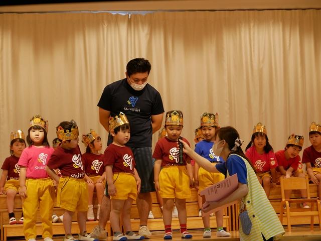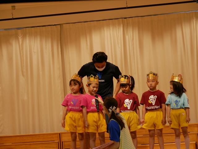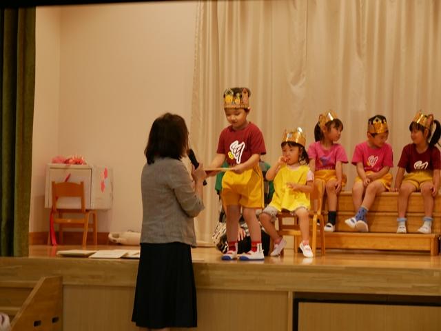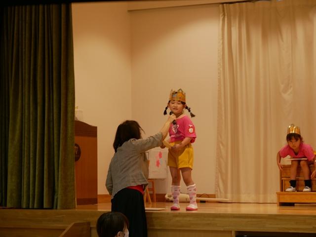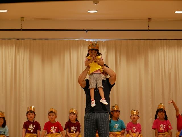 誕生児のお友達は、ピカピカの冠をかぶり、ニコニコでステージにあがりました。