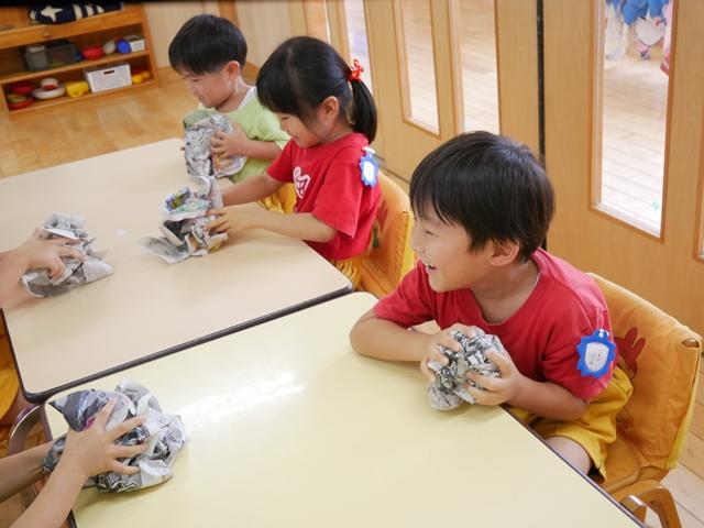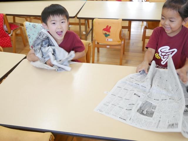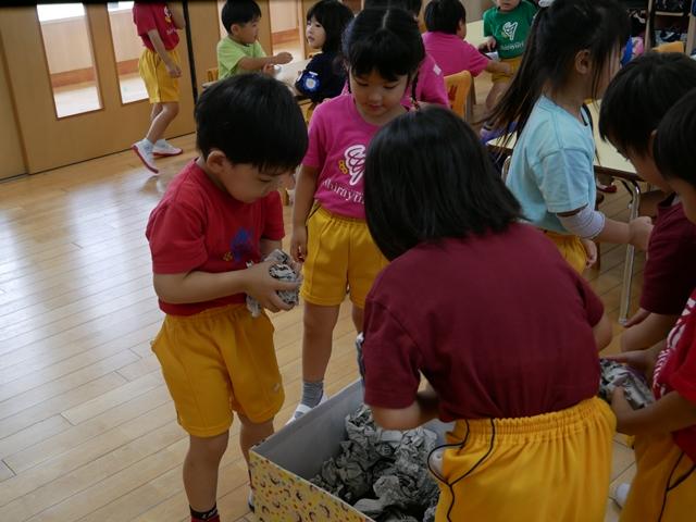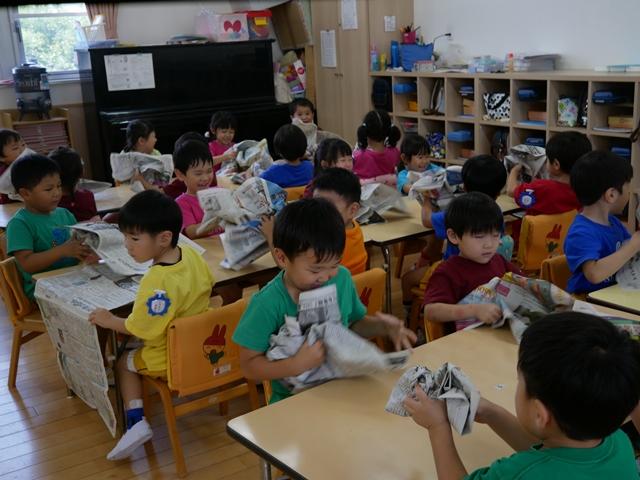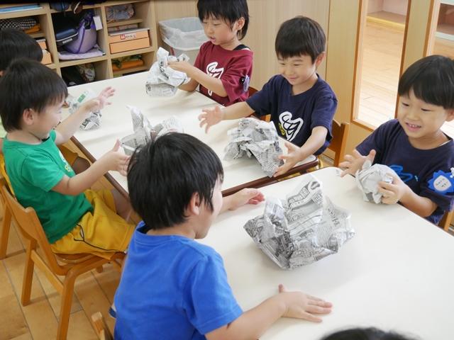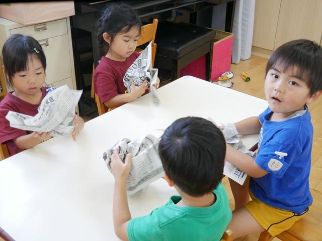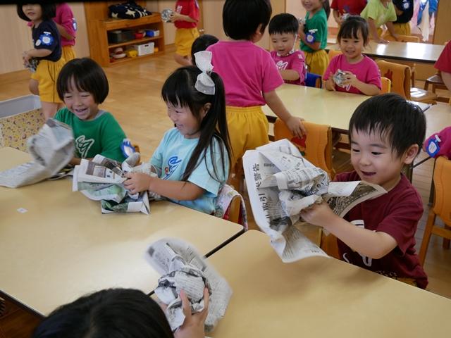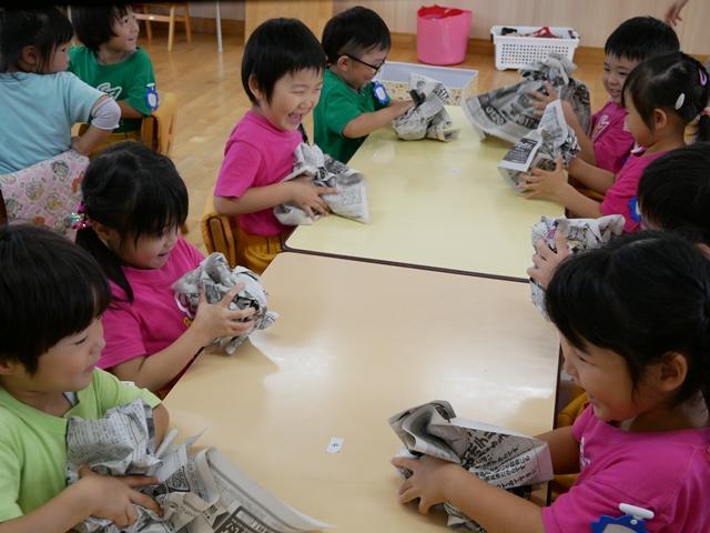新聞紙をくしゃくしゃに丸めて・・・ どんな形の御神輿ができるでしょう(^o^)