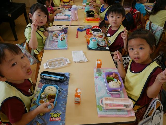 みんな手作りのお弁当を持って、ルンルンで登園してきました。