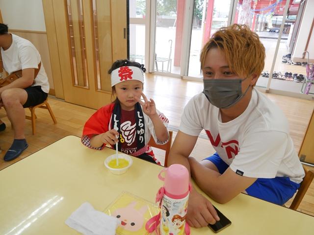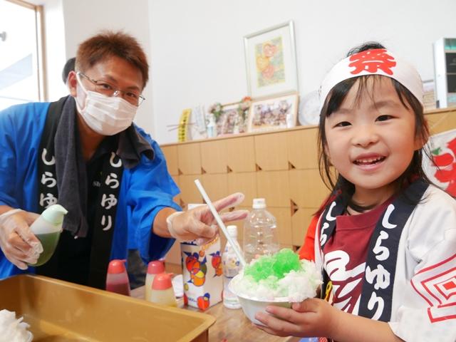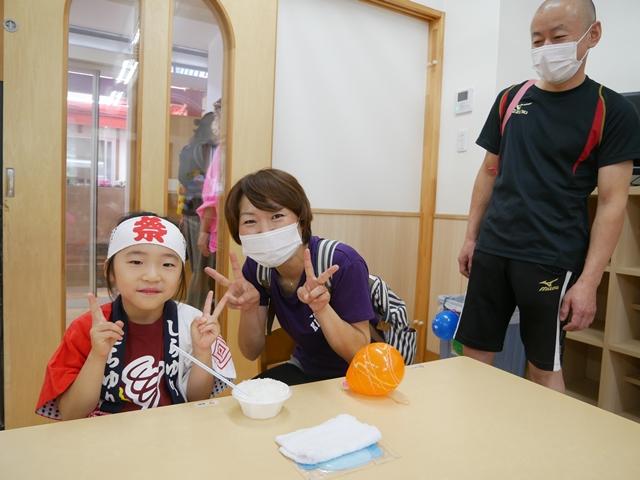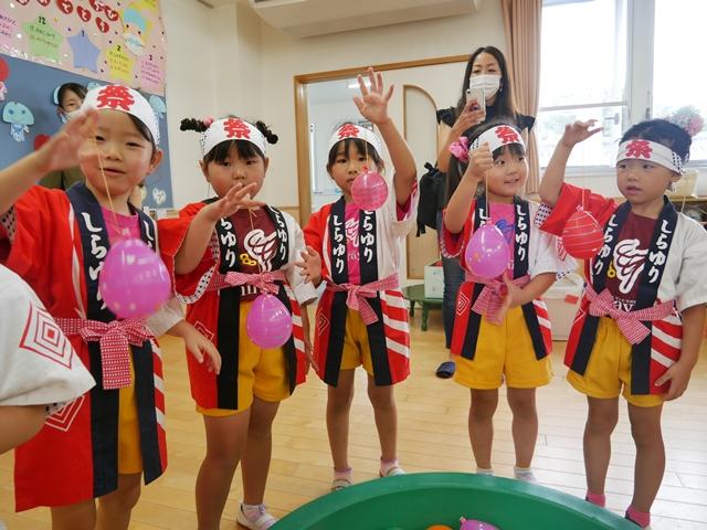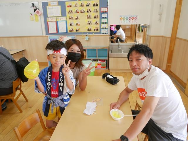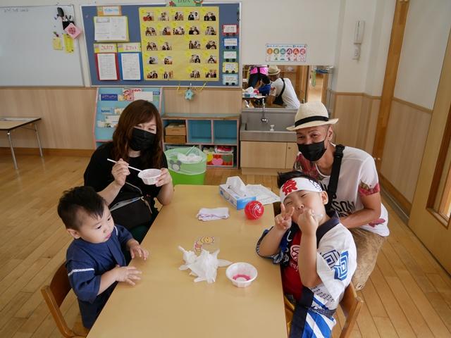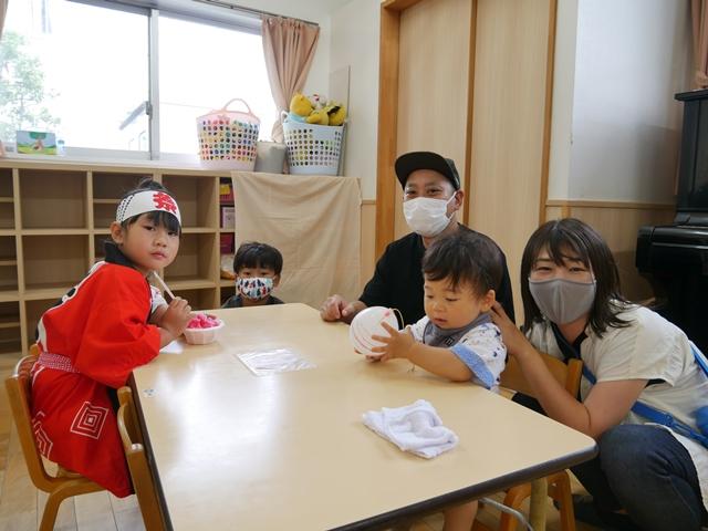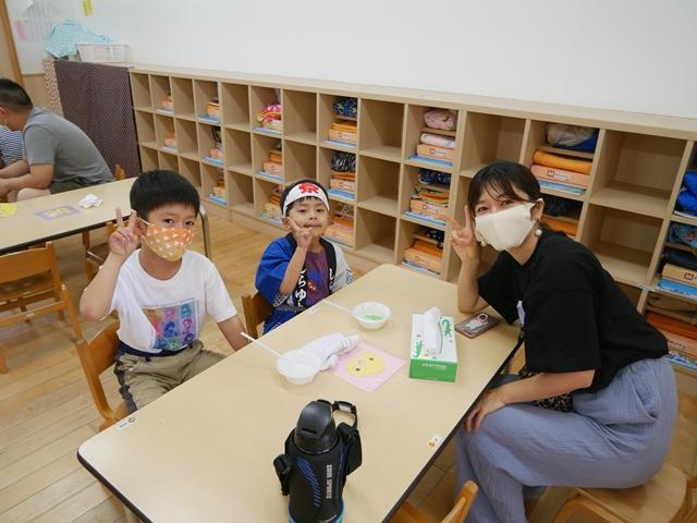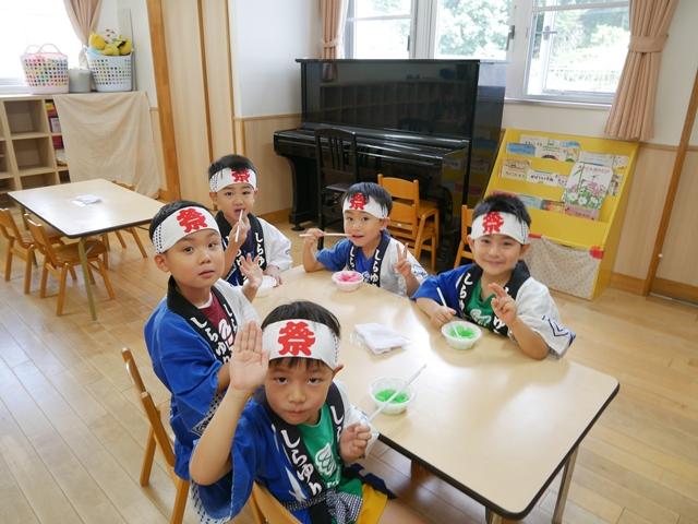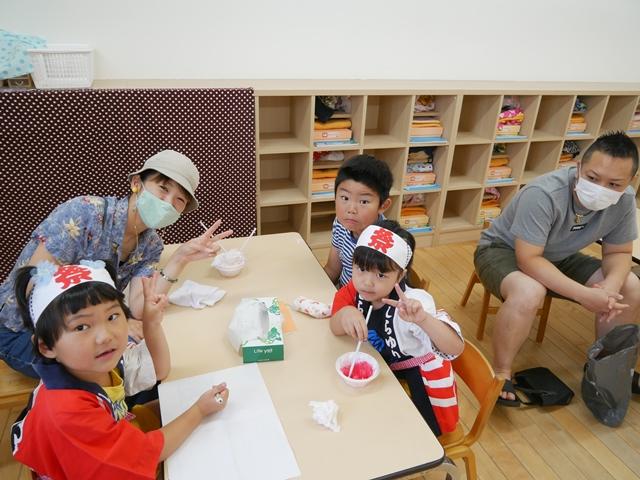 とんぼA・B組の部屋では、ヨーヨー釣りや輪投げを楽しみました。一階の部屋では、かき氷を食べてエネルギーチャージをしました!