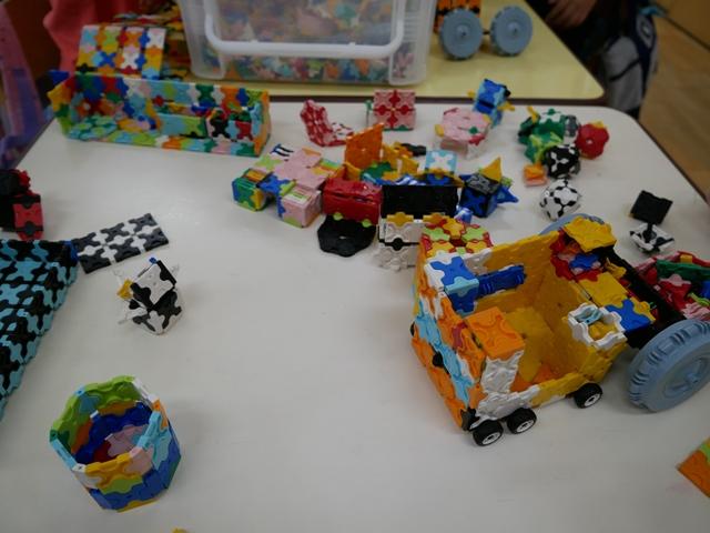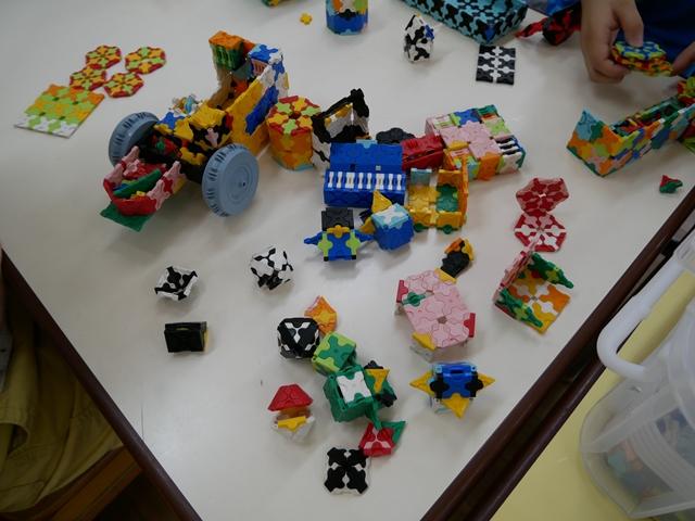 午後は、自由遊び。カードゲームやブロック、積み木など好きな物で遊びました。