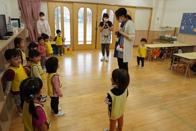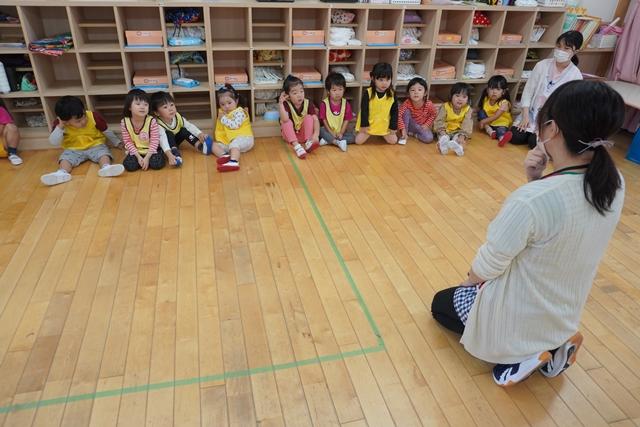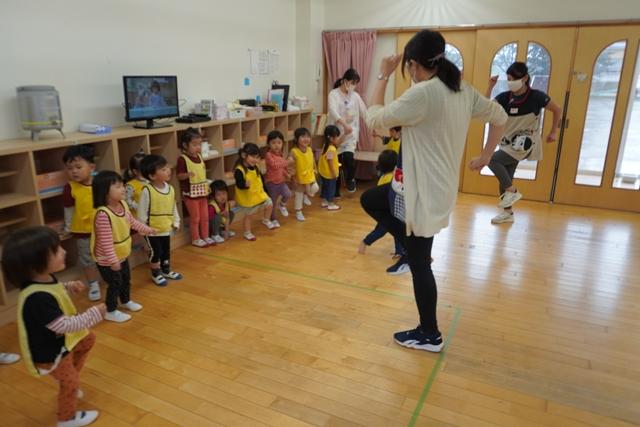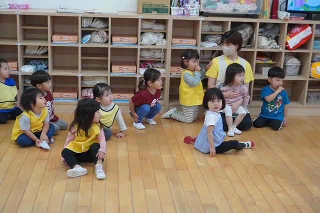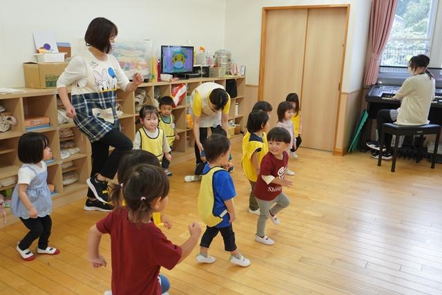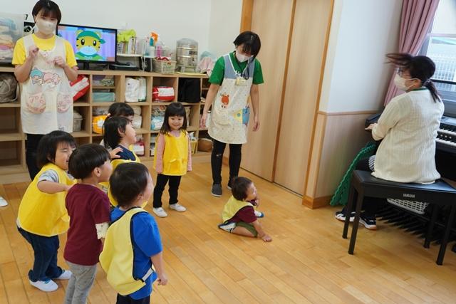 先生と一緒にお歌を歌ったり、ピアノの音に合わせて、体を動かしたり