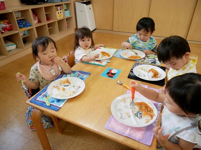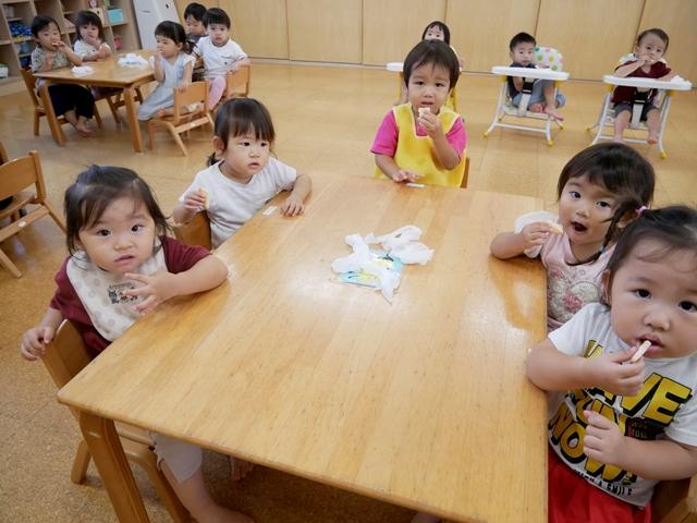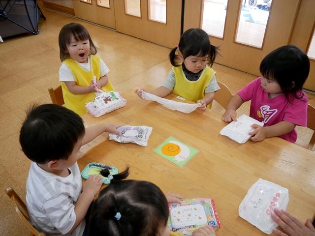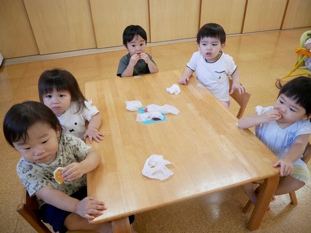 絵本を見た後は、朝のお歌を歌い、大好きなおやつの時間です♪
