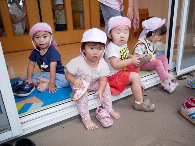 帽子をかぶり、靴をはいて緑の広場に行ってきました!!