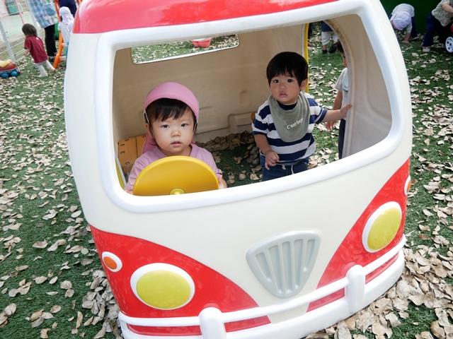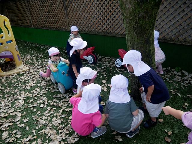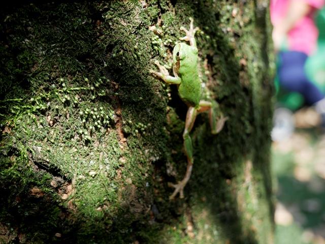 カエルを見つけたり、どんぐりや落ち葉を拾って秋を感じて遊びました♪