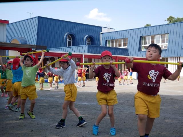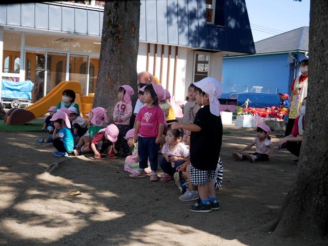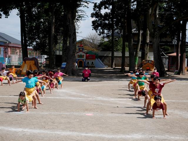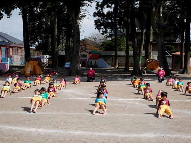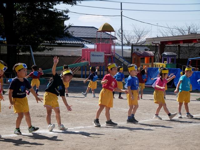 当日と同じ流れで励みました。林の中やウッドデッキでは、なかよしランドさんやつくし組さんが応援してくれていました♡