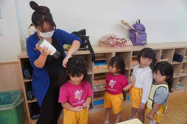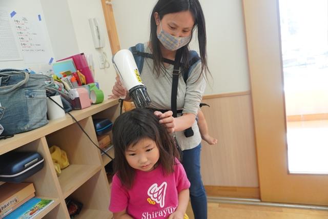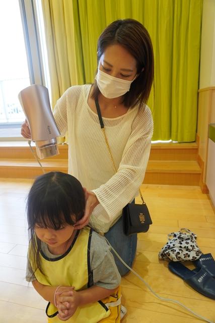 スイミングのあと、幼稚園で子ども達の髪の毛を乾かしてくださるドライヤーボランティアがあります。
