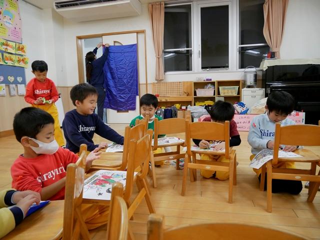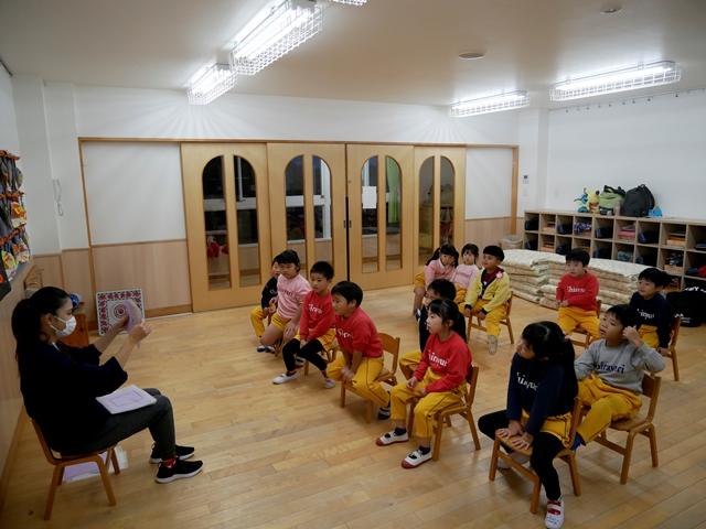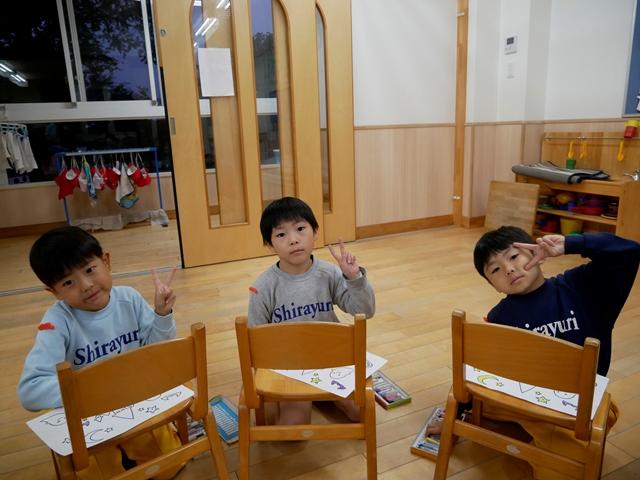 この日は、午前中は、お家で過ごし、15時30分に幼稚園に集合しました。