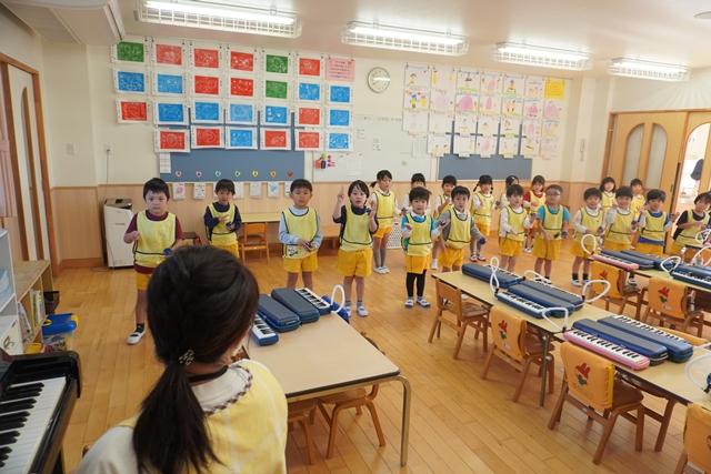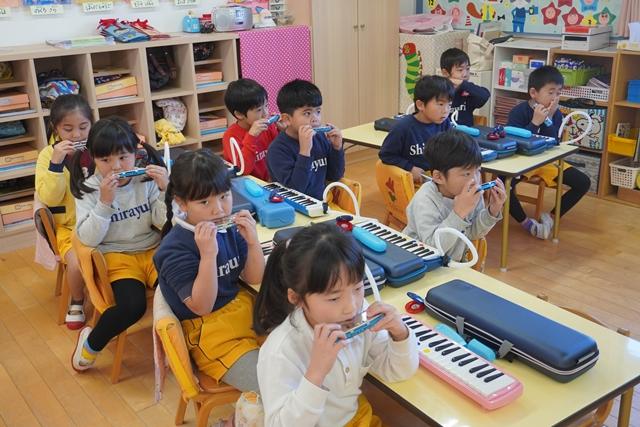 ほし組は、体操教室やお部屋でハーモニカの練習をしています。
