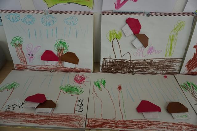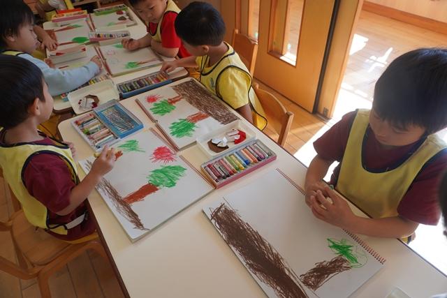 とんぼ組さんは、秋の折り紙製作や松坂先生の音楽遊びをしています。