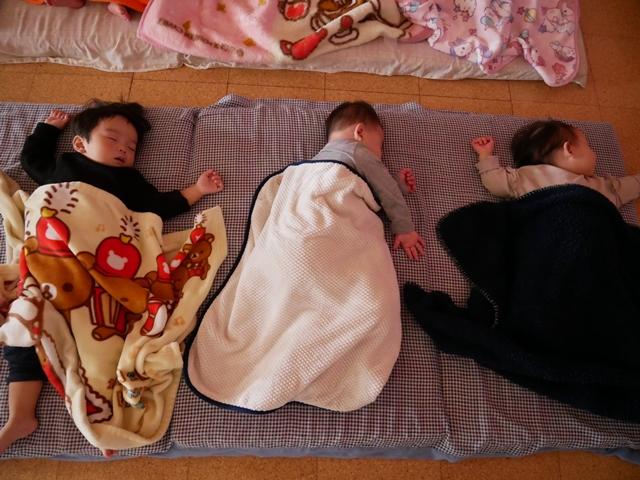 お外でたくさん遊んで、お昼寝もぐっすりです。