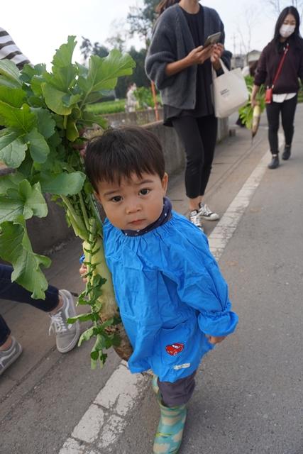 「どれにしようかなぁ~♪」お家の方と相談して、抜く大根を決めたら、