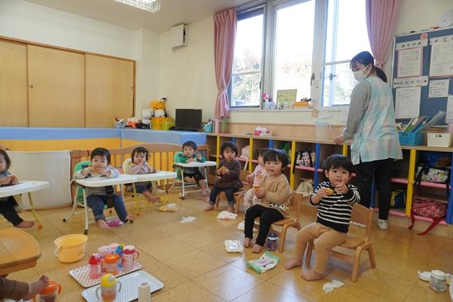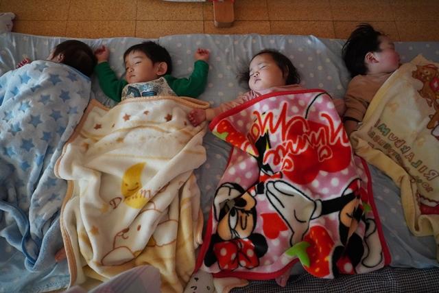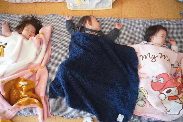 美味しい給食をもりもり食べて、なかよくお昼寝です。