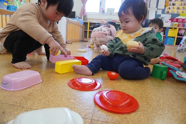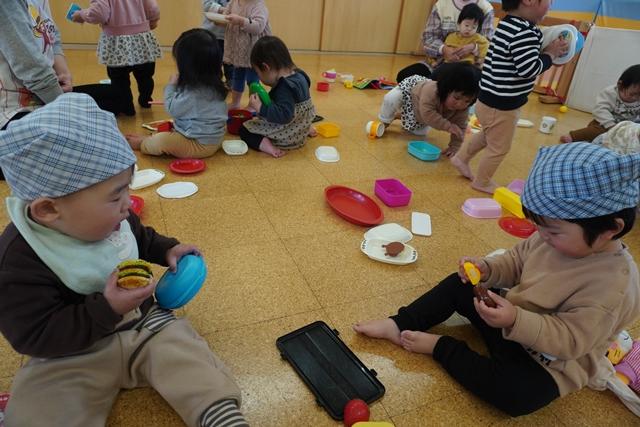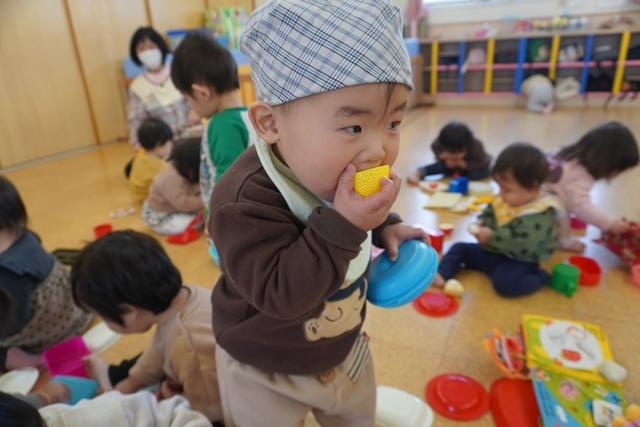 午前中の自由遊びでは、おままごとをして遊びました♪