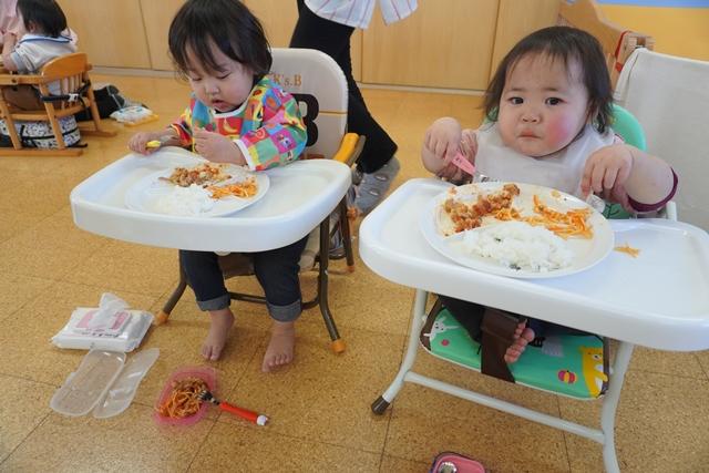 たくさん遊んだあとは、みんな大好き給食の時間。