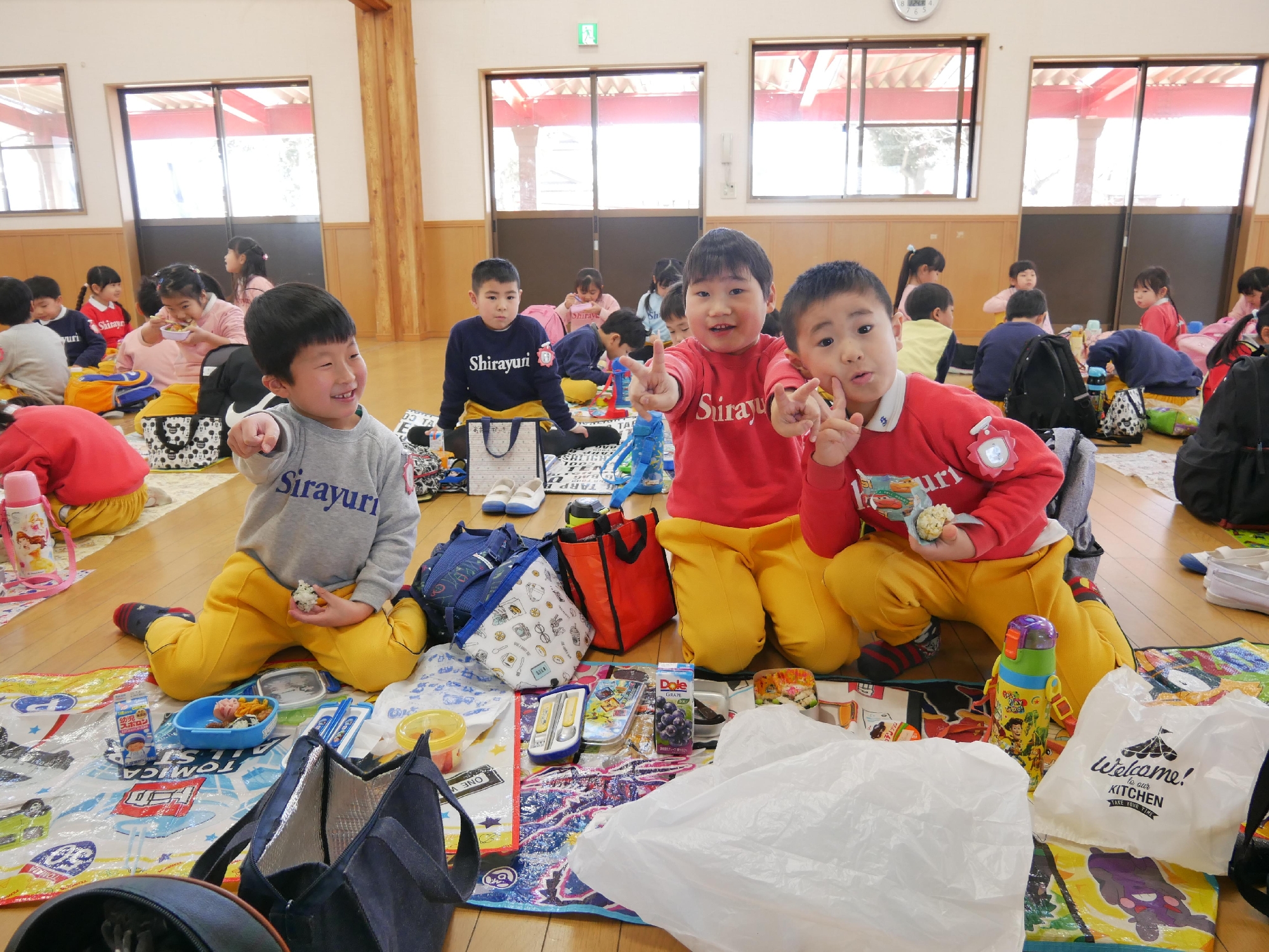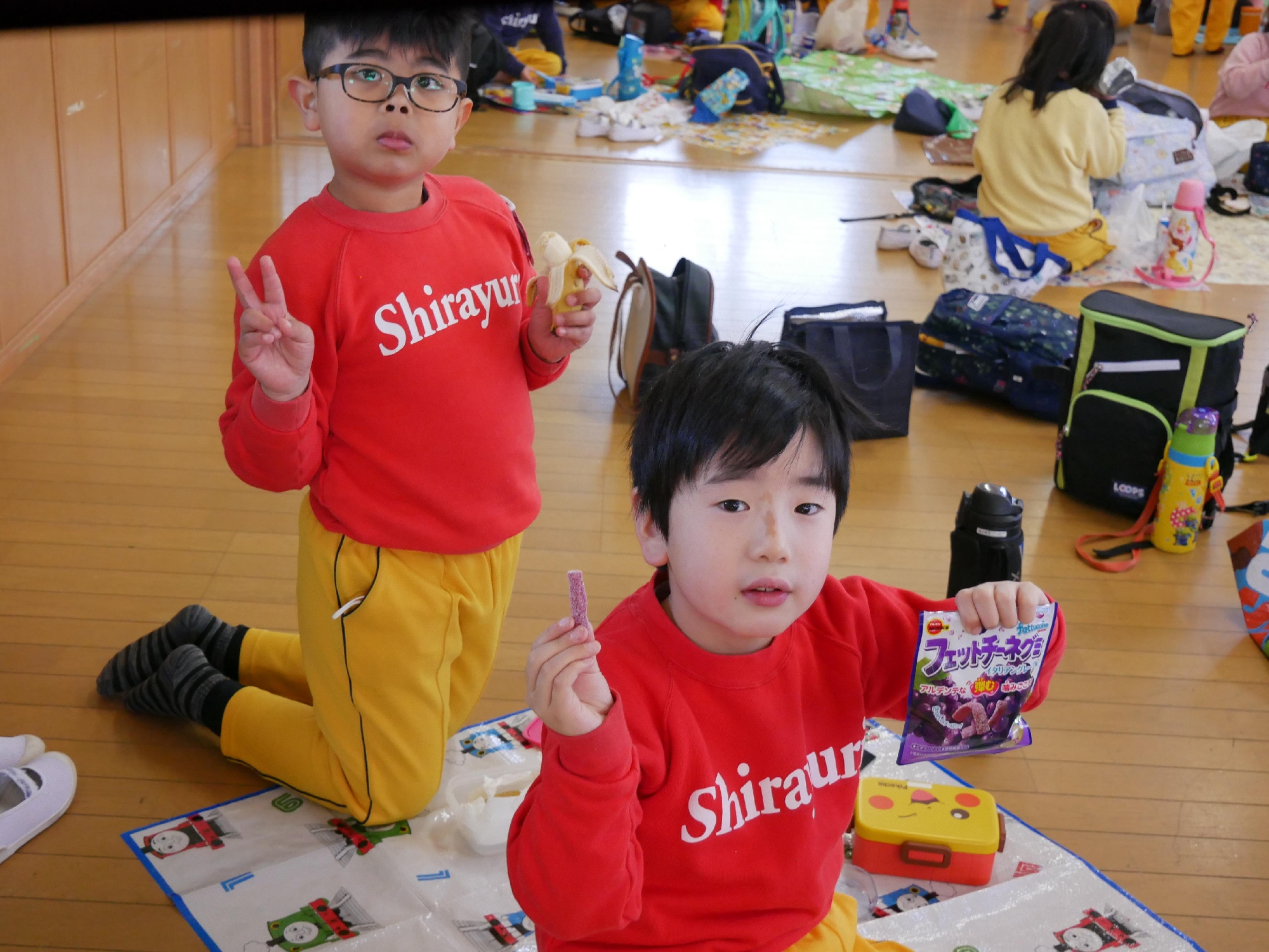 朝からリュックを背負い、お弁当やおやつを持ってきてルンルンなお友達♪