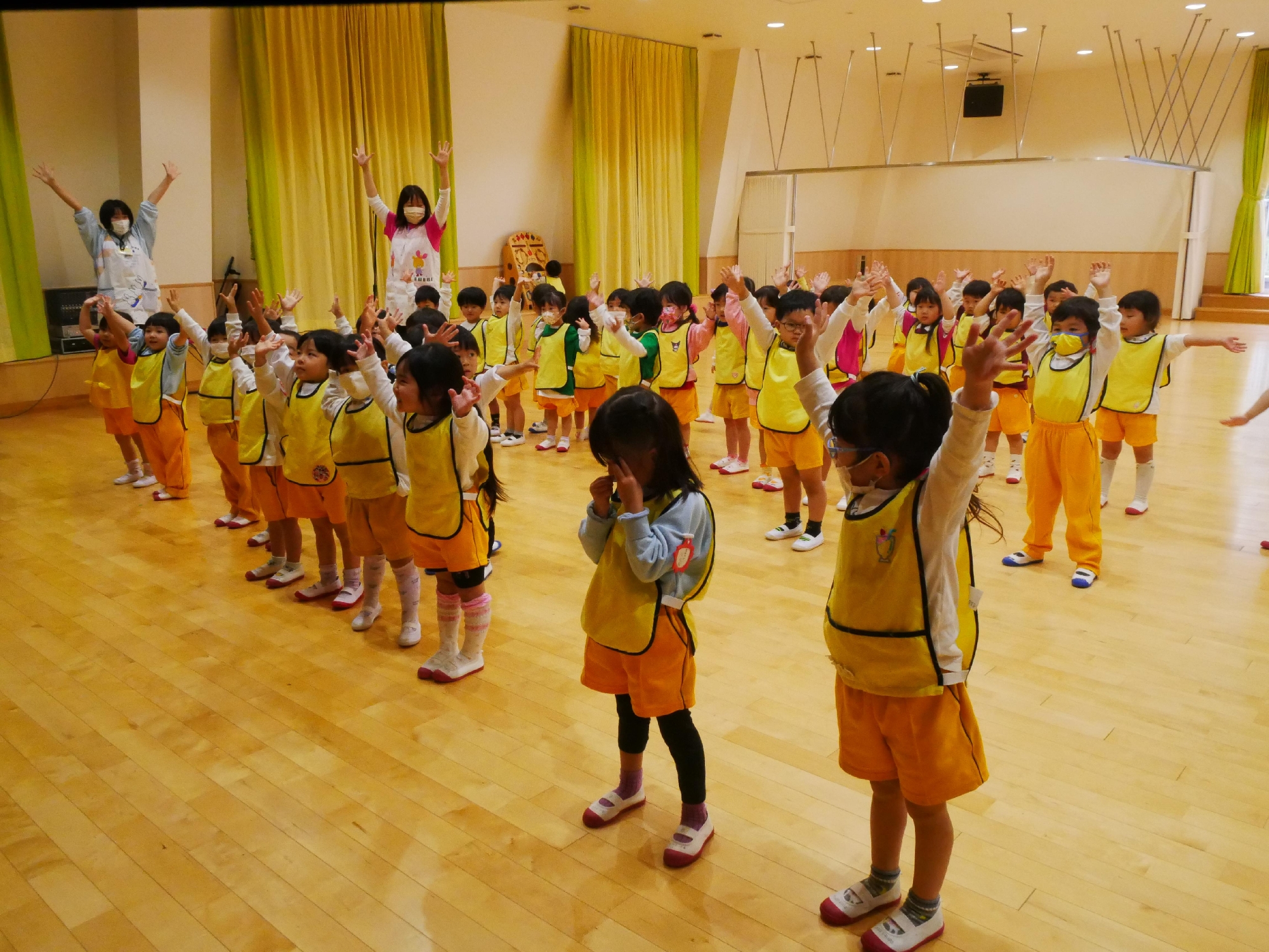 今日はホールで親子レクリエーション大会のダンス練習をしました。