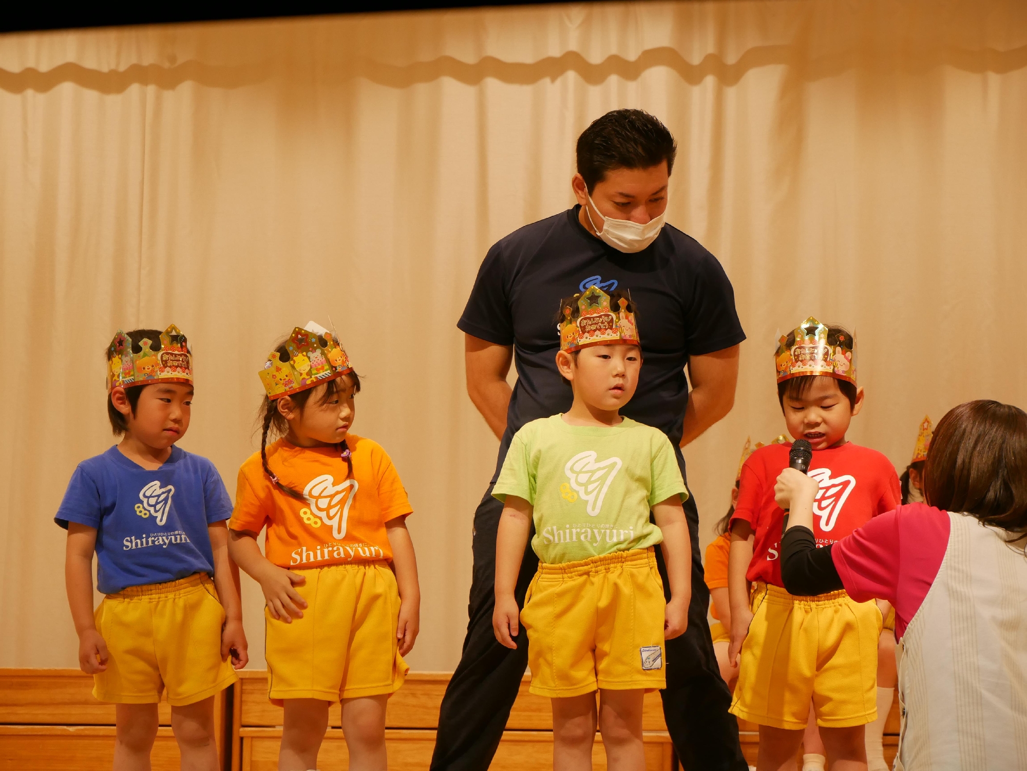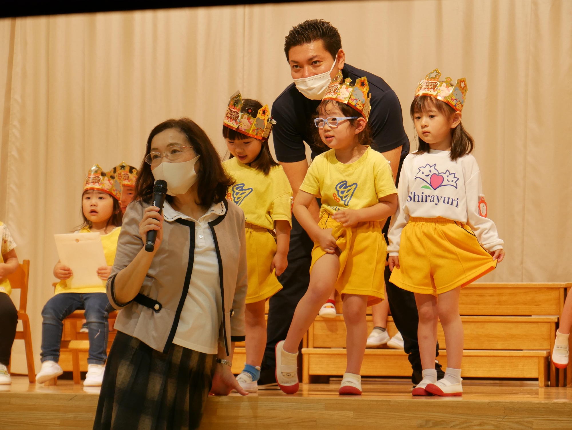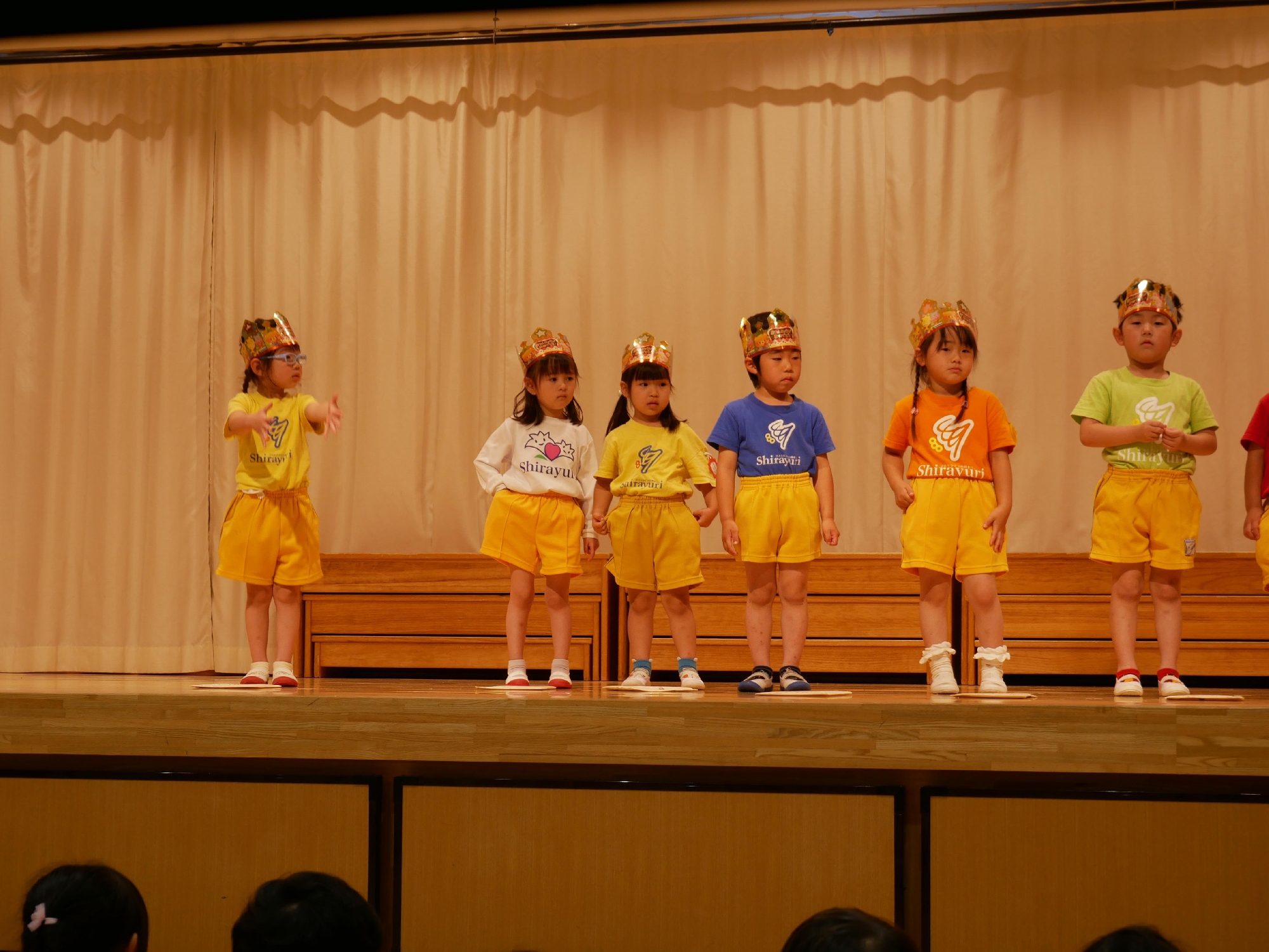 お客さんがいっぱいで、ソワソワしていたお友達もいましたが、上手にお名前やクラス、好きな食べ物等、発表できました♪