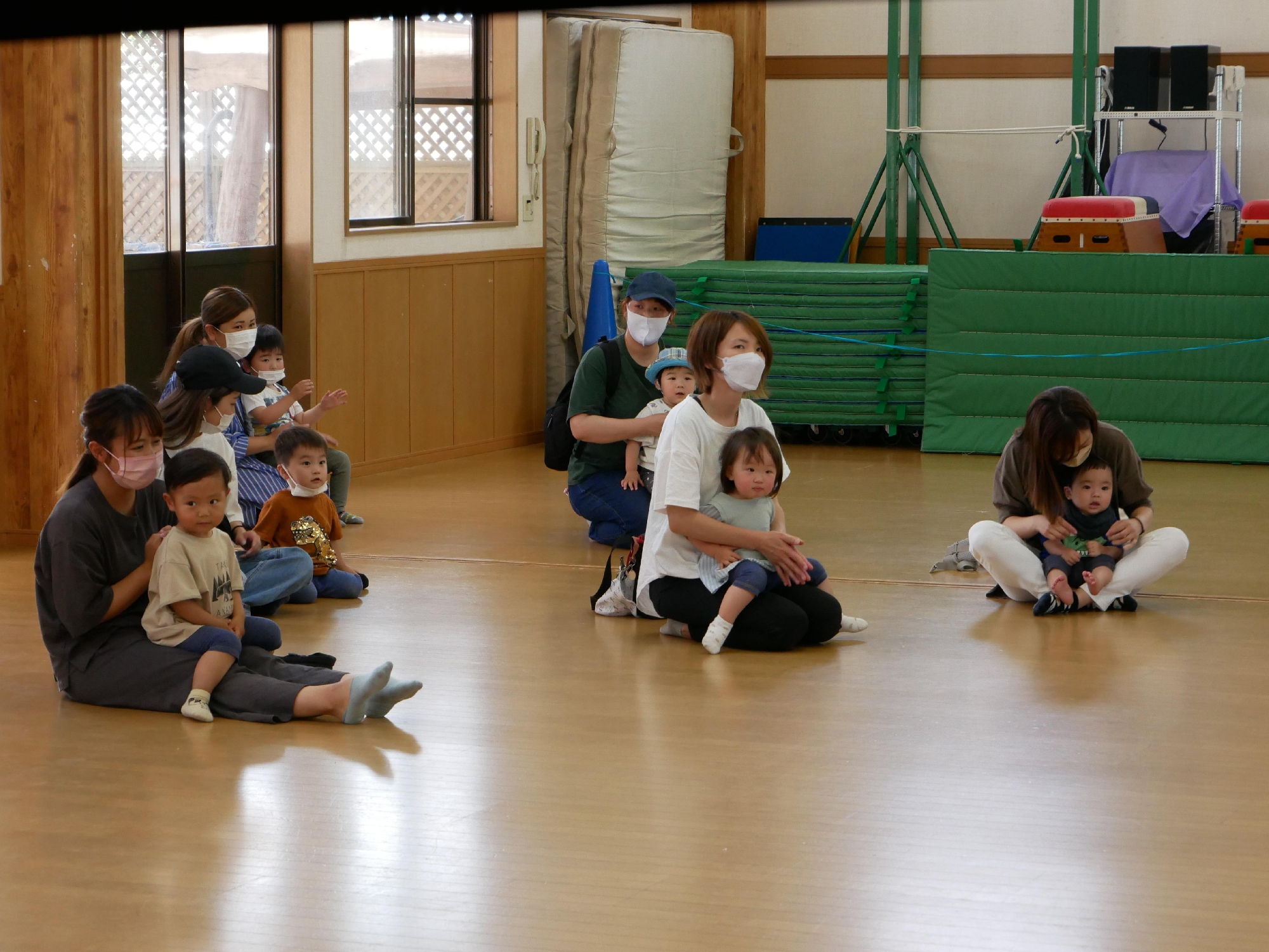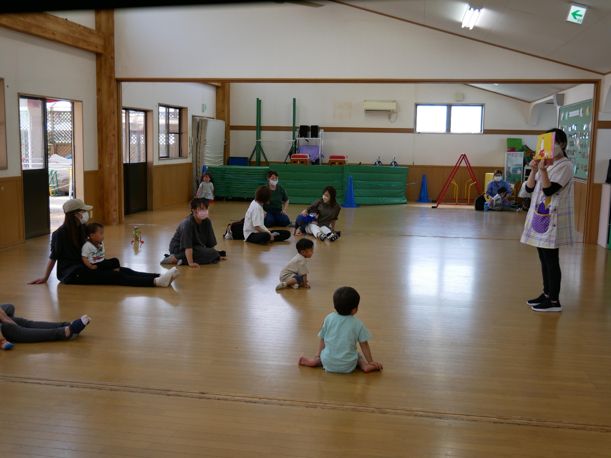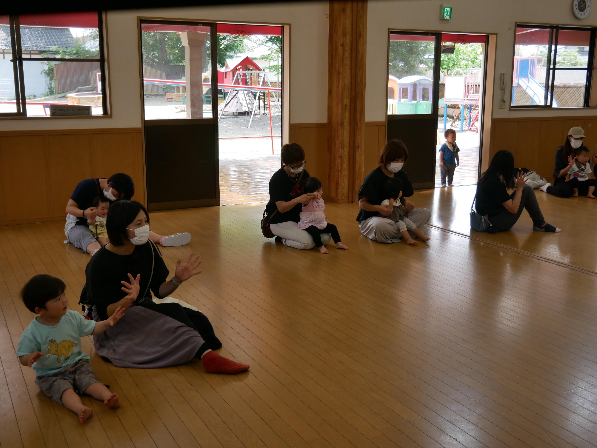 11時になったら集まり、手遊びや歌のお楽しみの時間です。