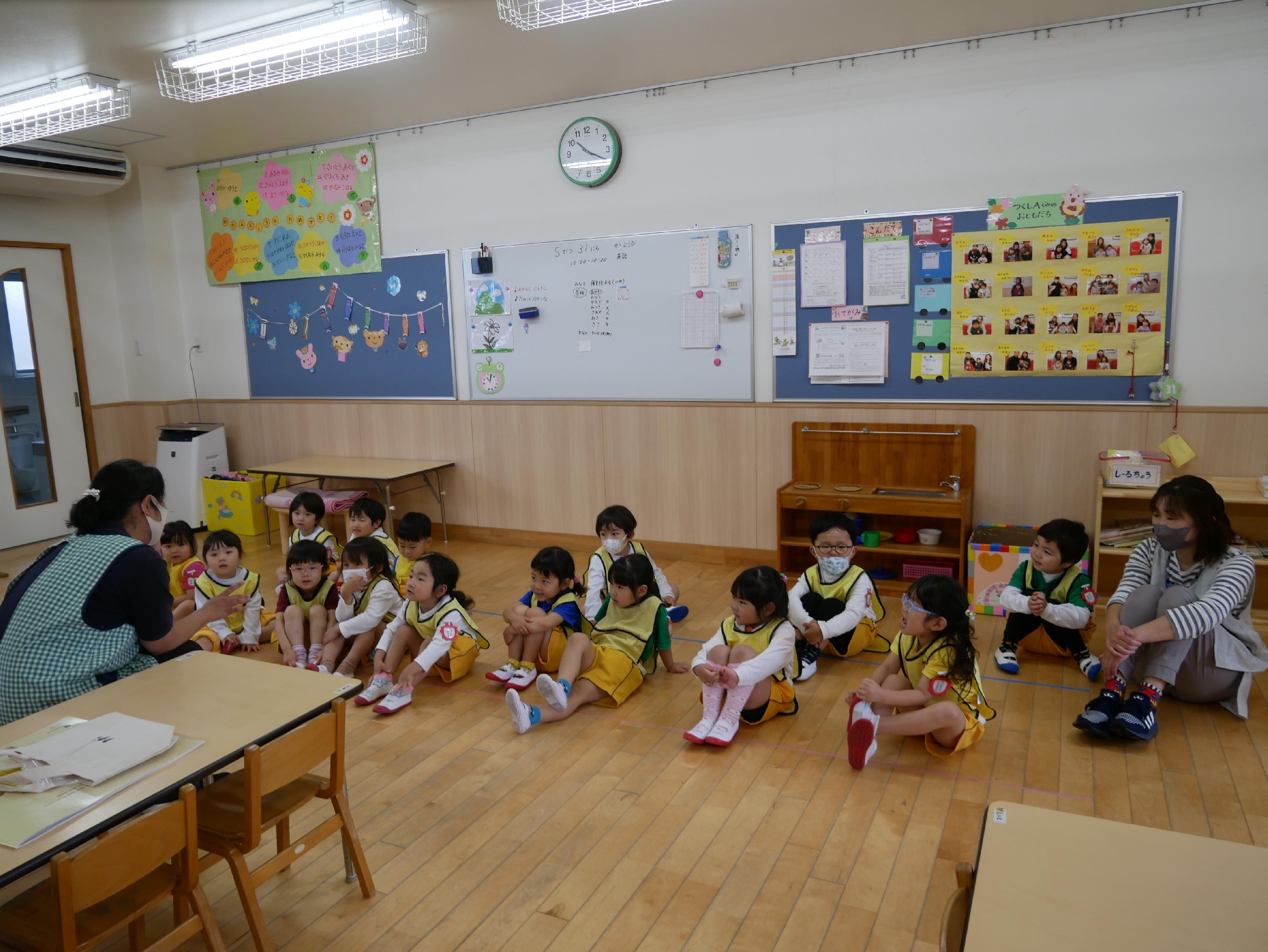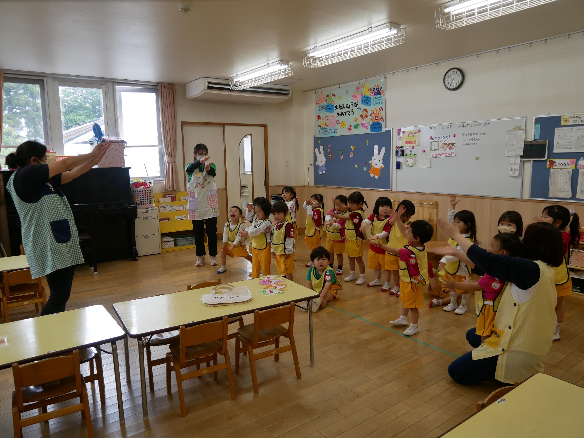 今日は、つくし組さん初めての英語であそぼうがありました。