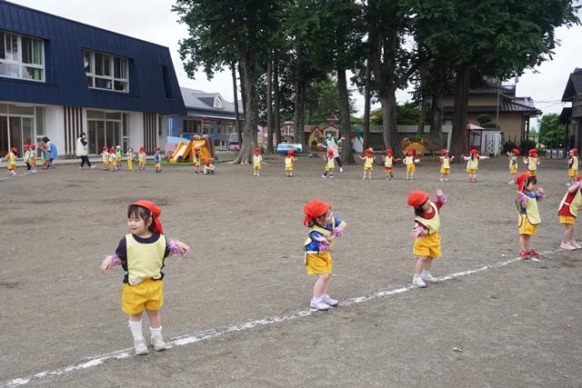 初めて3クラス一緒に、お外で踊ってみました。