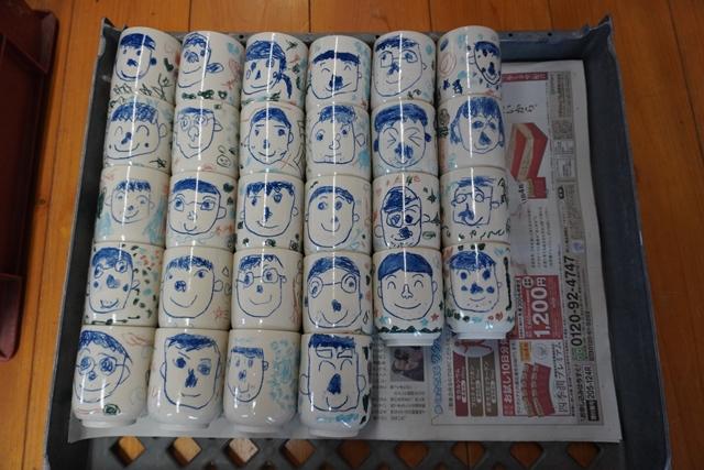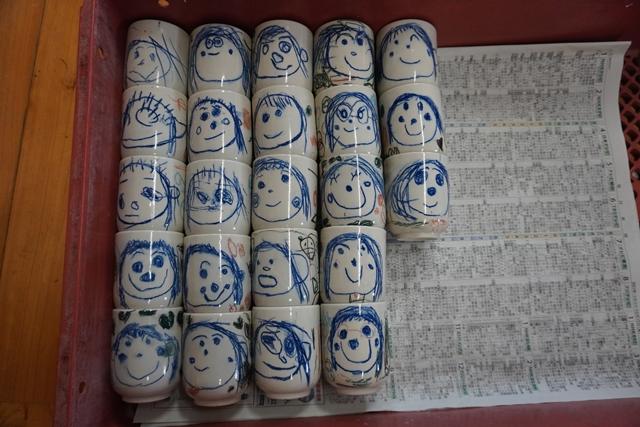 親子レクリエーション大会でお家の方にプレゼントする陶芸の湯呑み(とんぼ組・ほし組の作品)が出来上がりました。