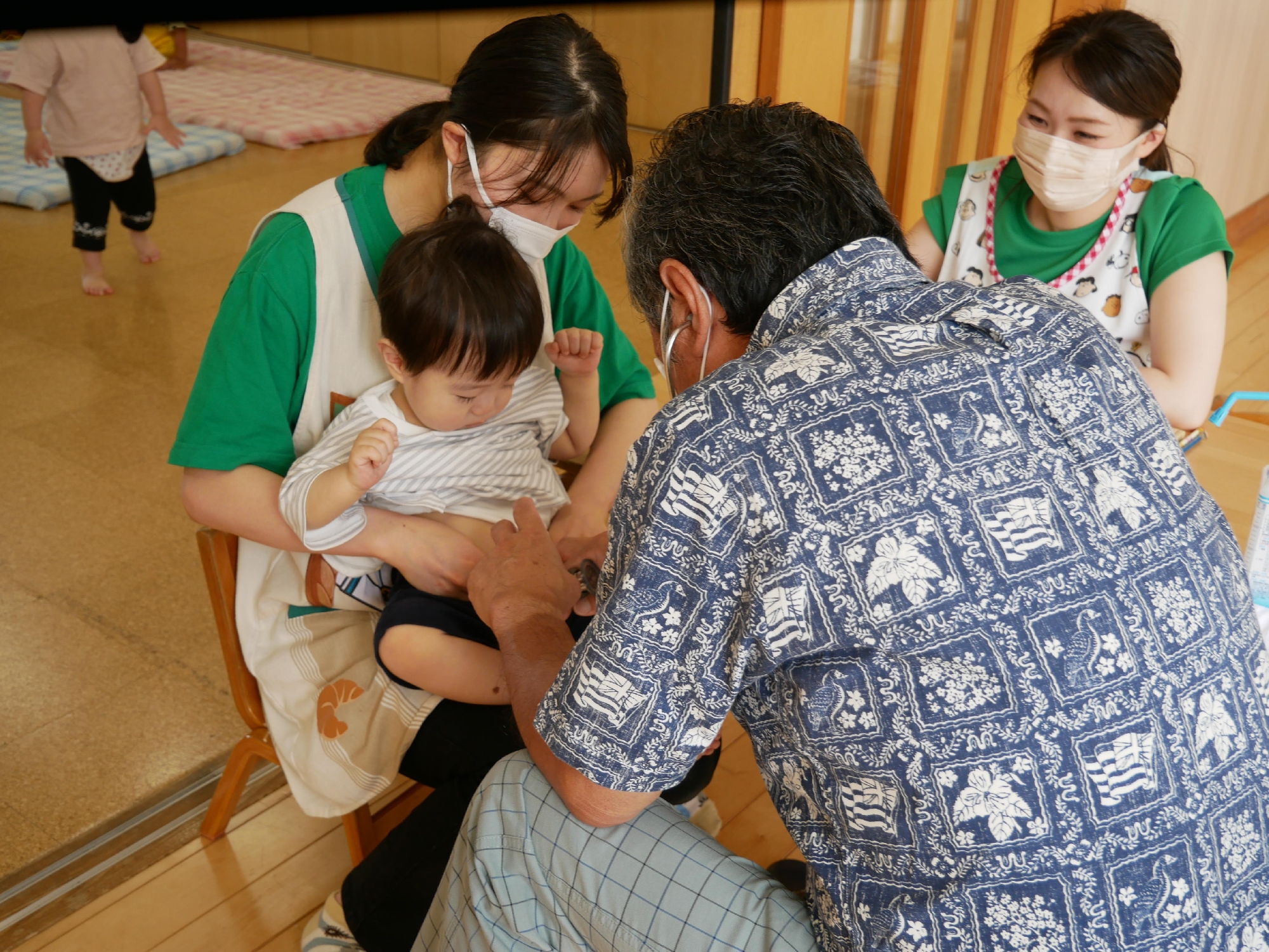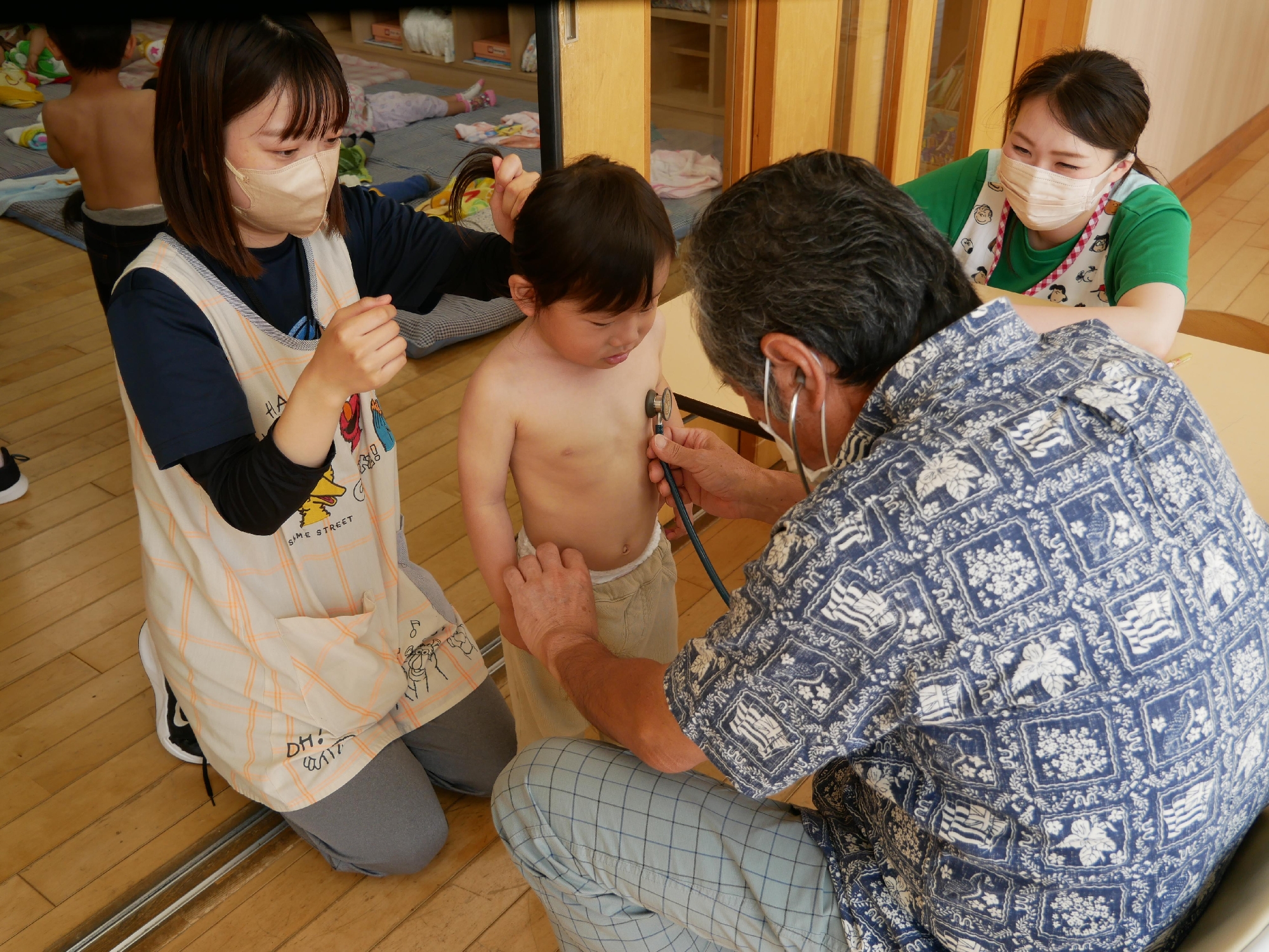 今日は、先週に引き続き内科検診(ひよこ組・なかよしランド・つくし組)がありました。