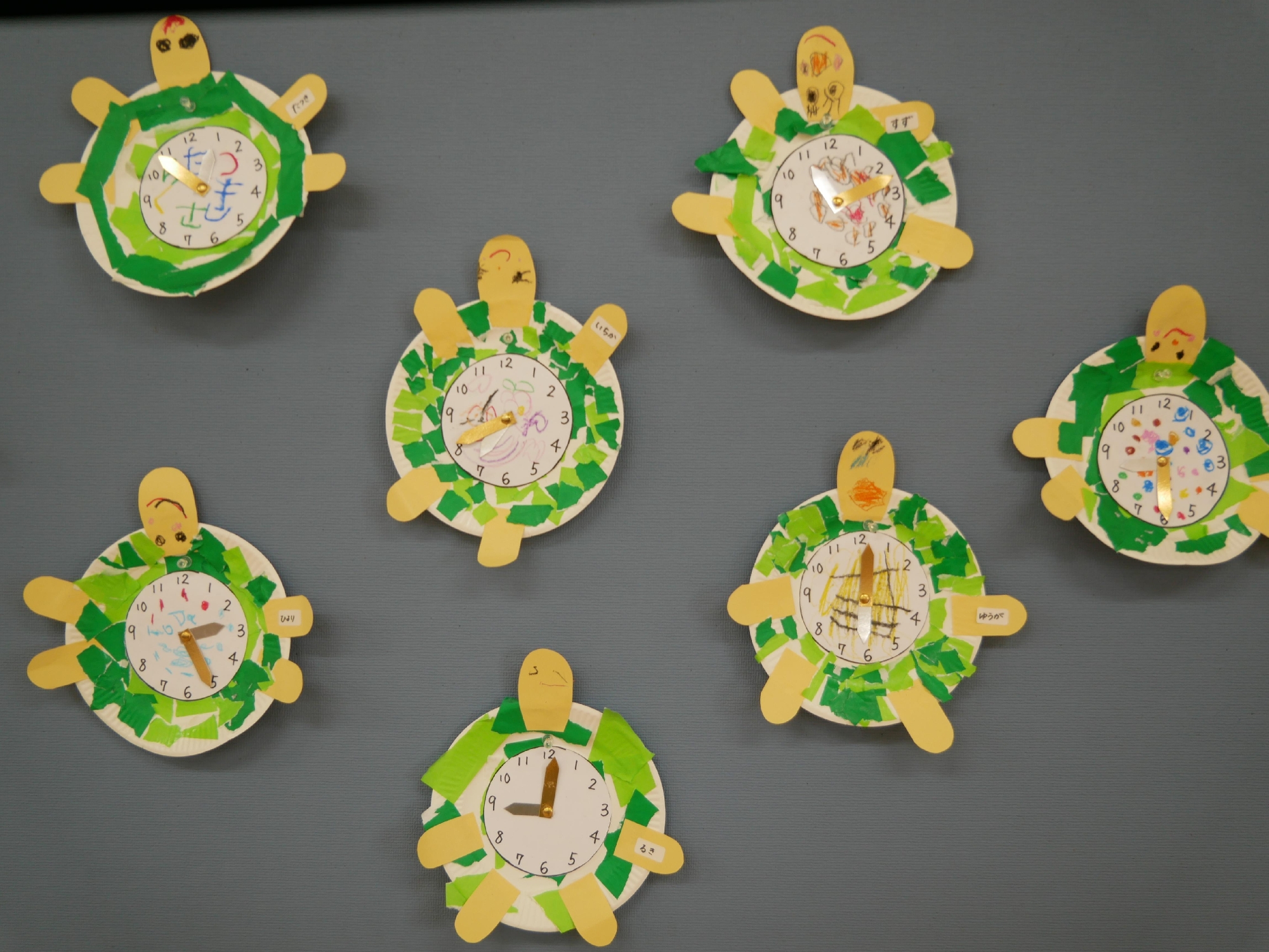 紙皿を使ってカメの時計を作りました。