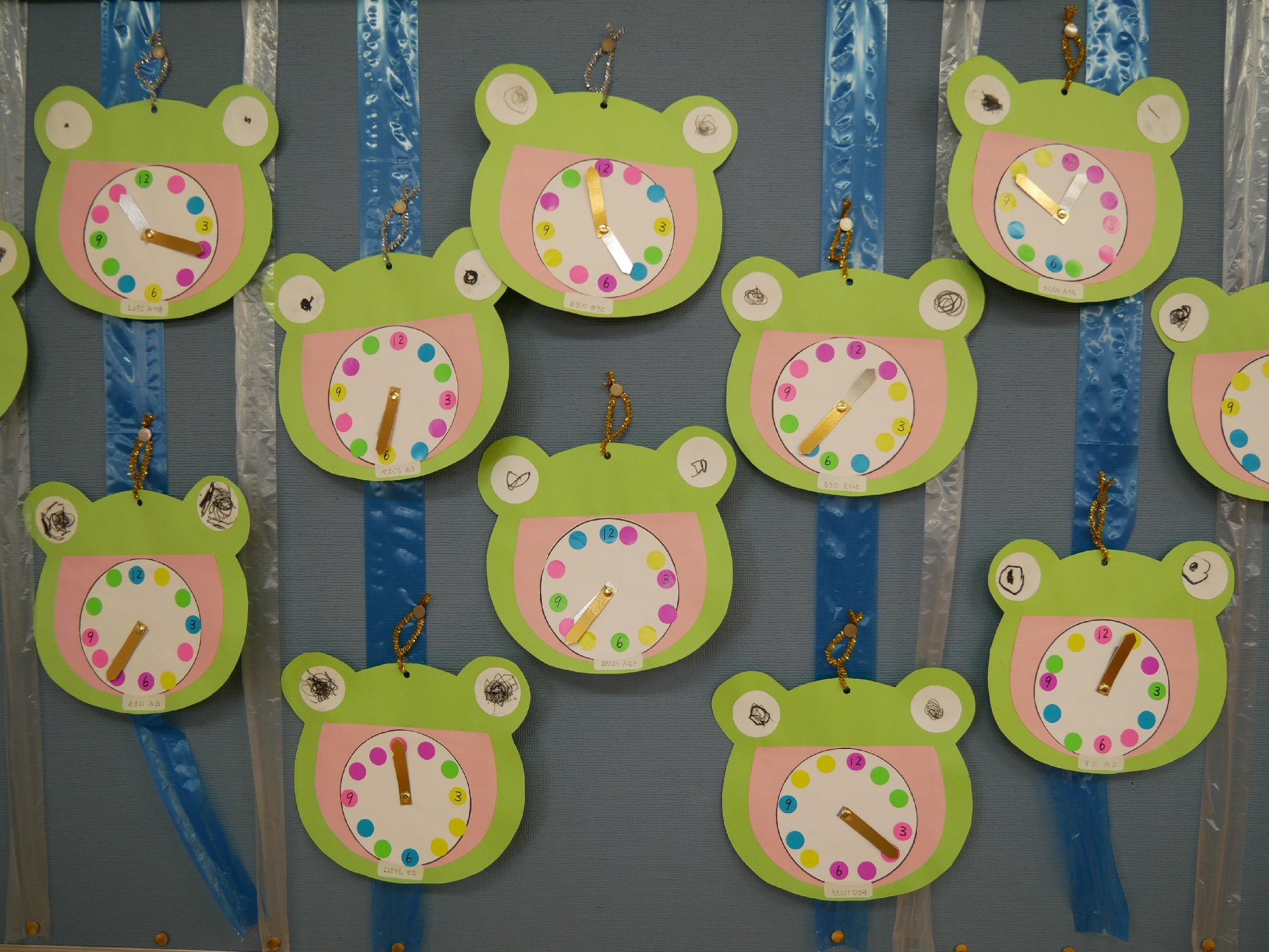 保育参観でお家の人と一緒にカエルの時計を作りました。