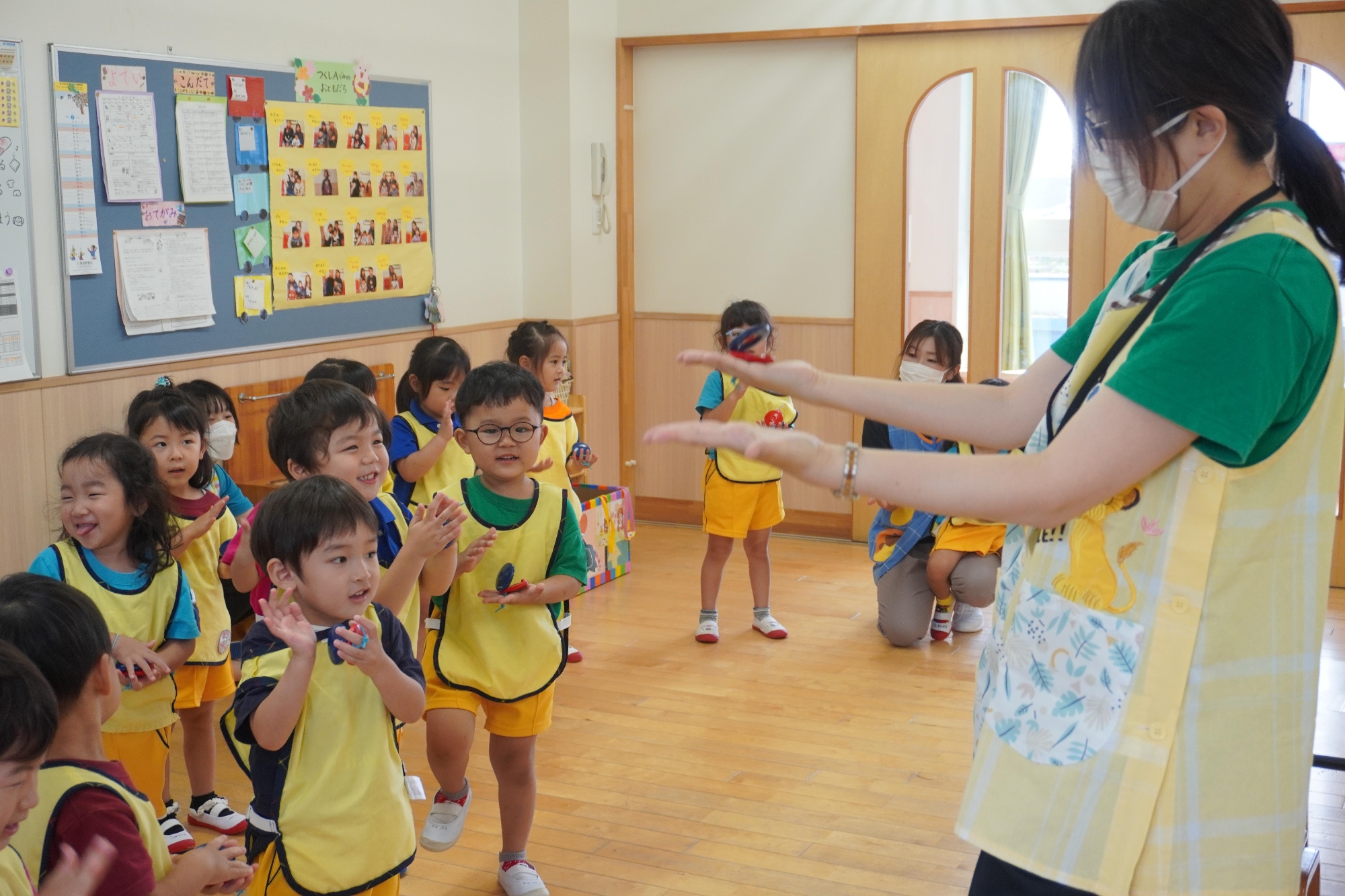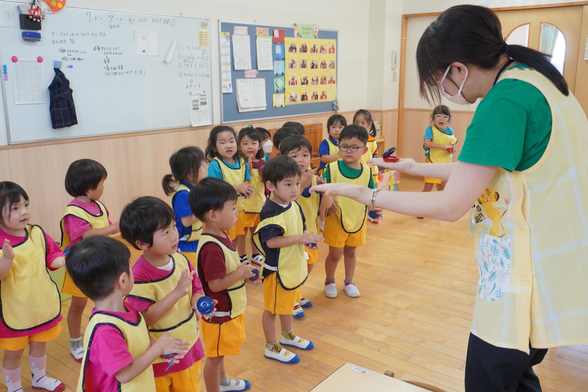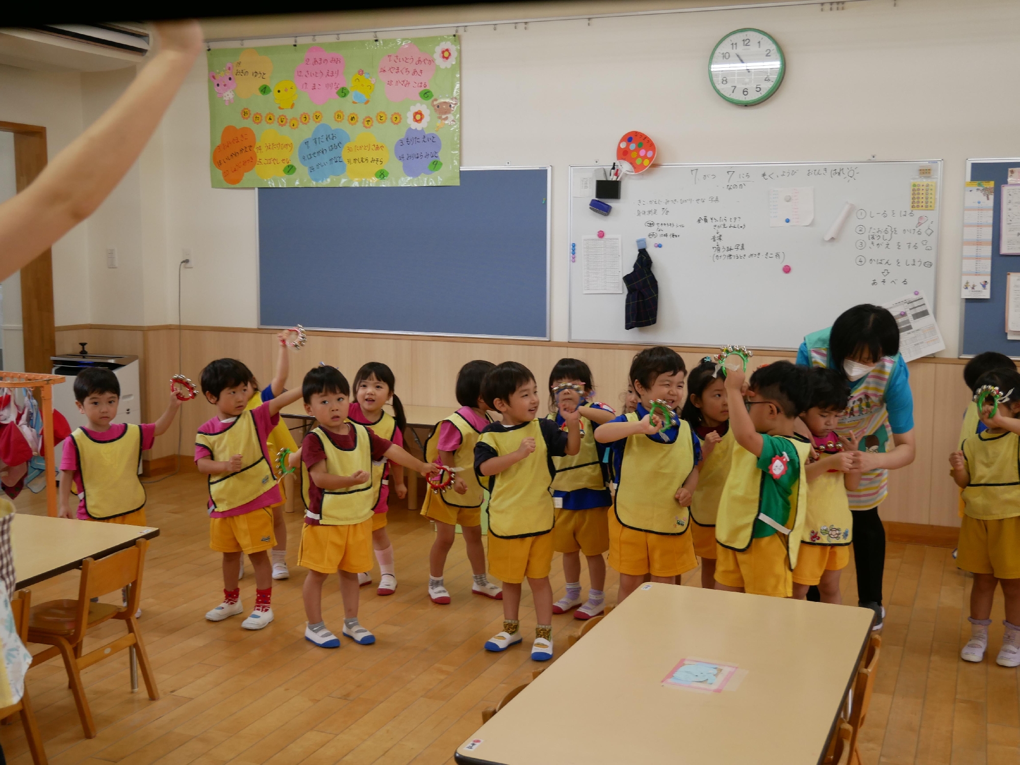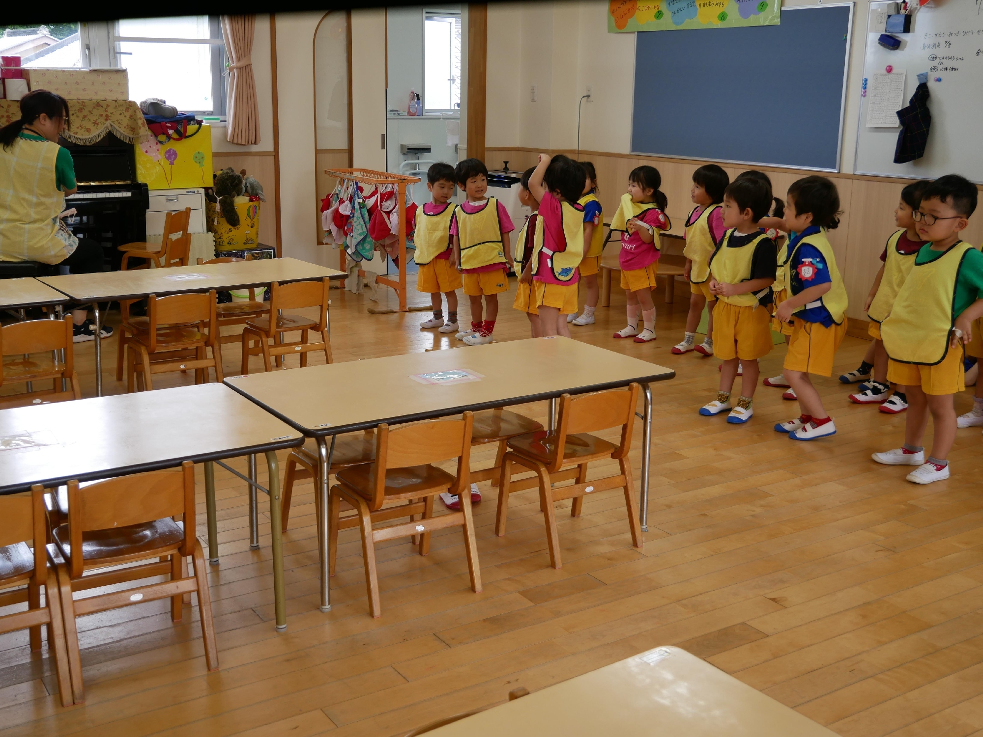 その後の音楽あそびでは、松坂先生のピアノに合わせて♪メリーさんの羊 ♪キラキラ星 を歌いました。