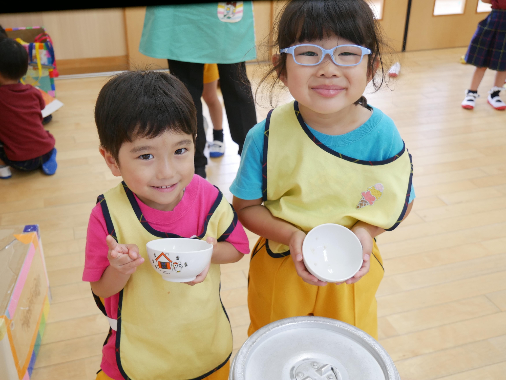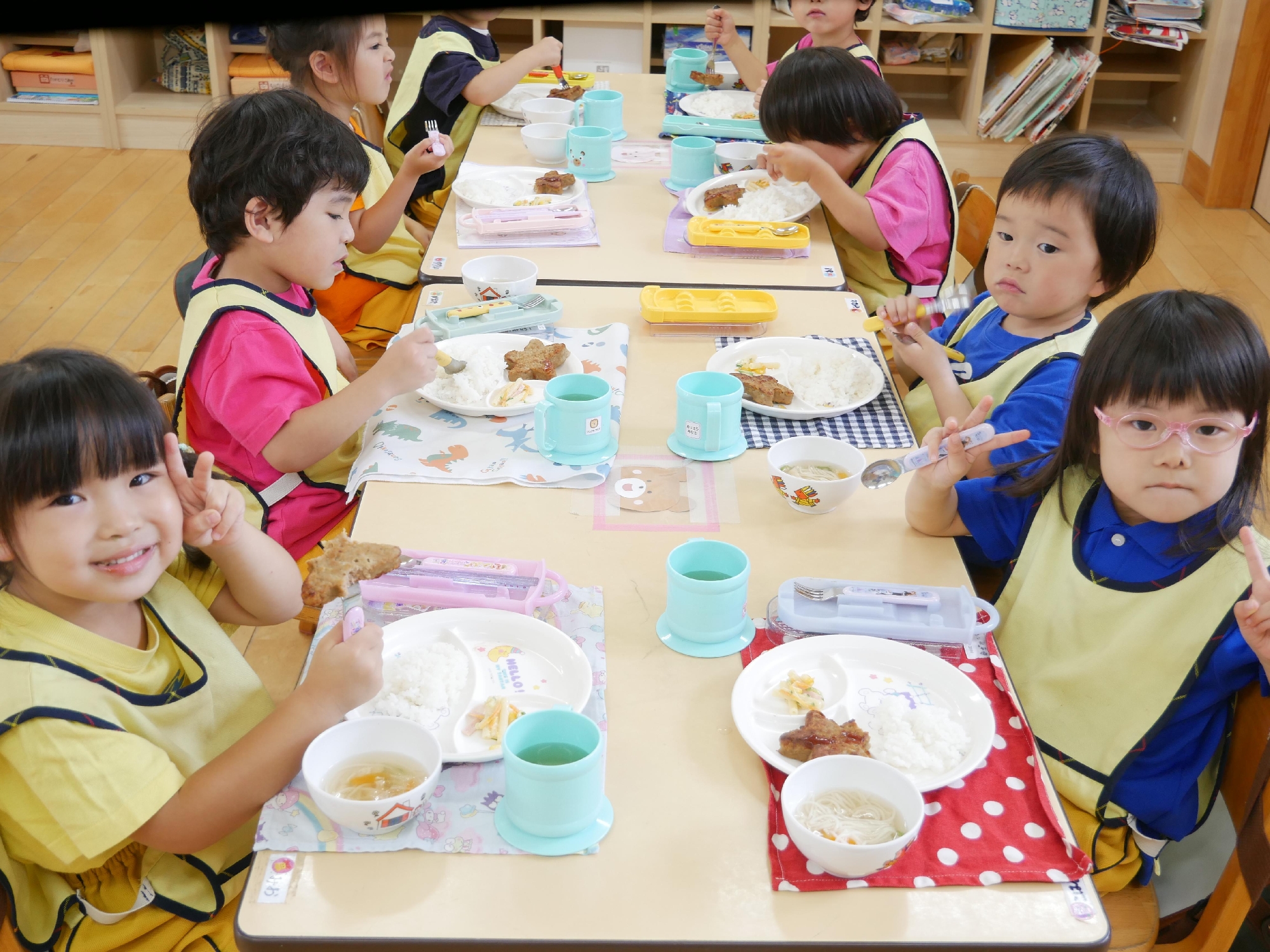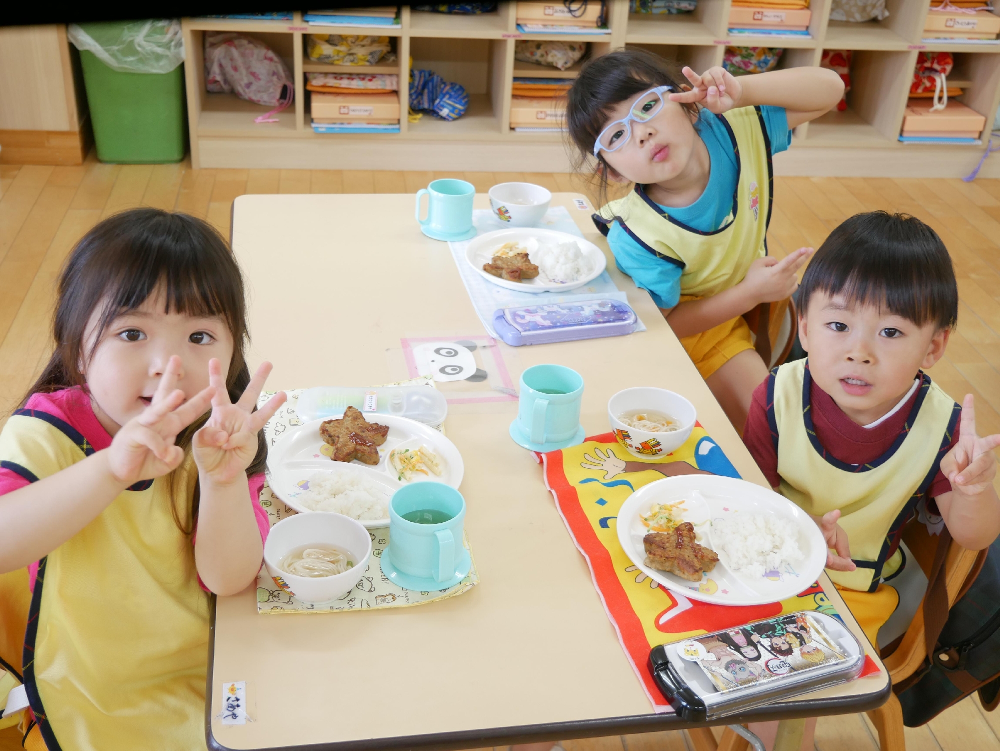 きれいに完食しおかわりするお友達や、ナフキンや半ズボンをきちんとたたでしまっているお友達がいました。