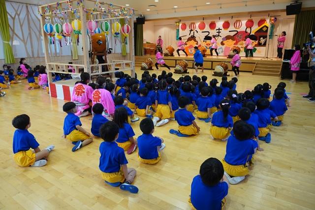 先生たちの和太鼓発表では、こどもたちみんなも真剣にみていました。