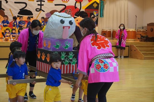 その後は、しらゆり音頭を踊ったり、とんぼ組はみんなで作ったおばけのお神輿を担いだり、