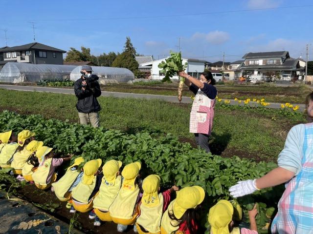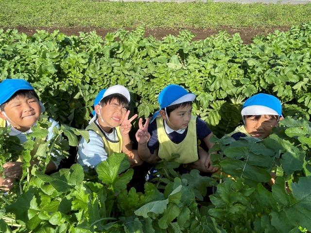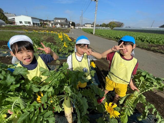 なかよしランドからほし組のお友だち、楽しみにしていた大根抜きを行いました。